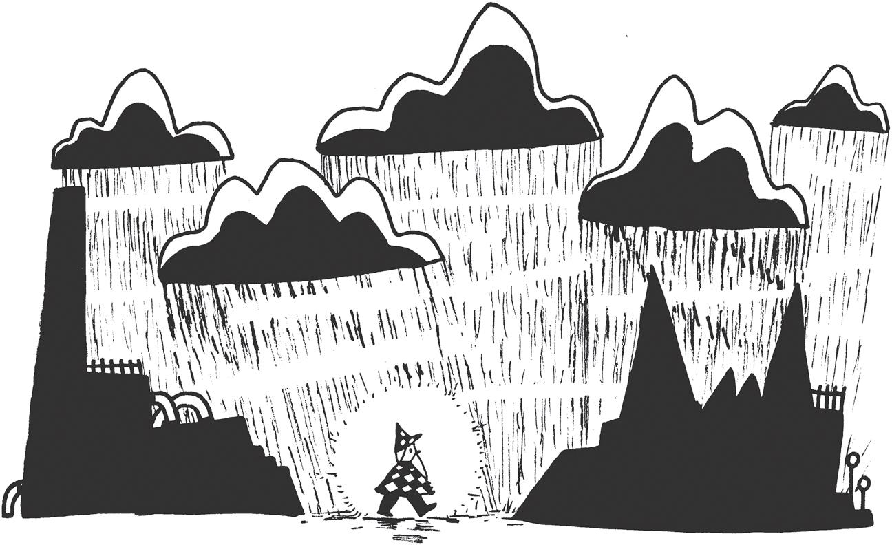 It was raining again in the city of Quagton. The streets were unusually busy. People hurried about, sheltering themselves under their coats or gathering under walkways and awnings, waiting for the downpour to cease. But there was one man who didn’t hunch or hurry. He walked with the steady pace of a wind-up tin soldier – back straight and head held high. On top of that head, he wore a tall hat decorated with a shining metal feather. He came from the direction of the palace, footsteps tapping down the steep winding path, under a bridge, up some stairs, over a walkway. The rain pelted everything relentlessly, but it did not touch this short- statured man. If anyone had looked closely, they might have noticed he was surrounded by a halo of splashing raindrops which never touched him but rolled down an invisible forcefield in the air. Even his shoes – smart green boots with golden buckles – did not get wet as he walked through the puddles. Instead, the water parted ways as the boot approached, then sloshed back together as it left, and the man made his way to the main