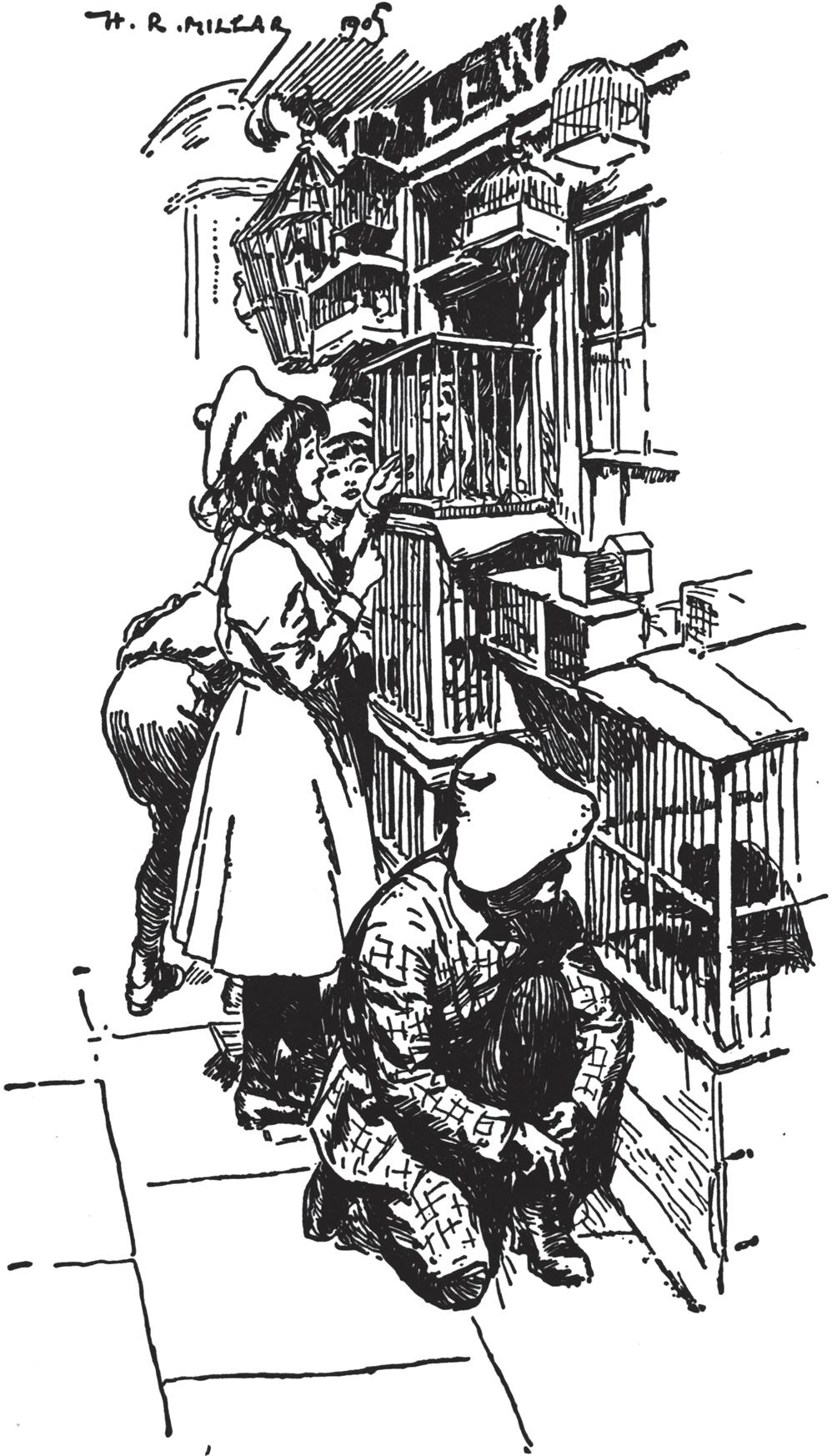 Presently, by some wonderful chance turn of Robert’s (who had been voted Captain because the girls thought it would be good for him – and indeed he thought so himself – and of course Cyril couldn’t vote against him because it would have looked like a mean jealousy), they came into the little interesting criss-crossy streets that held the most interesting shops of all – the shops where live things were sold. There was one shop window entirely filled with cages, and all sorts of beautiful birds in them.