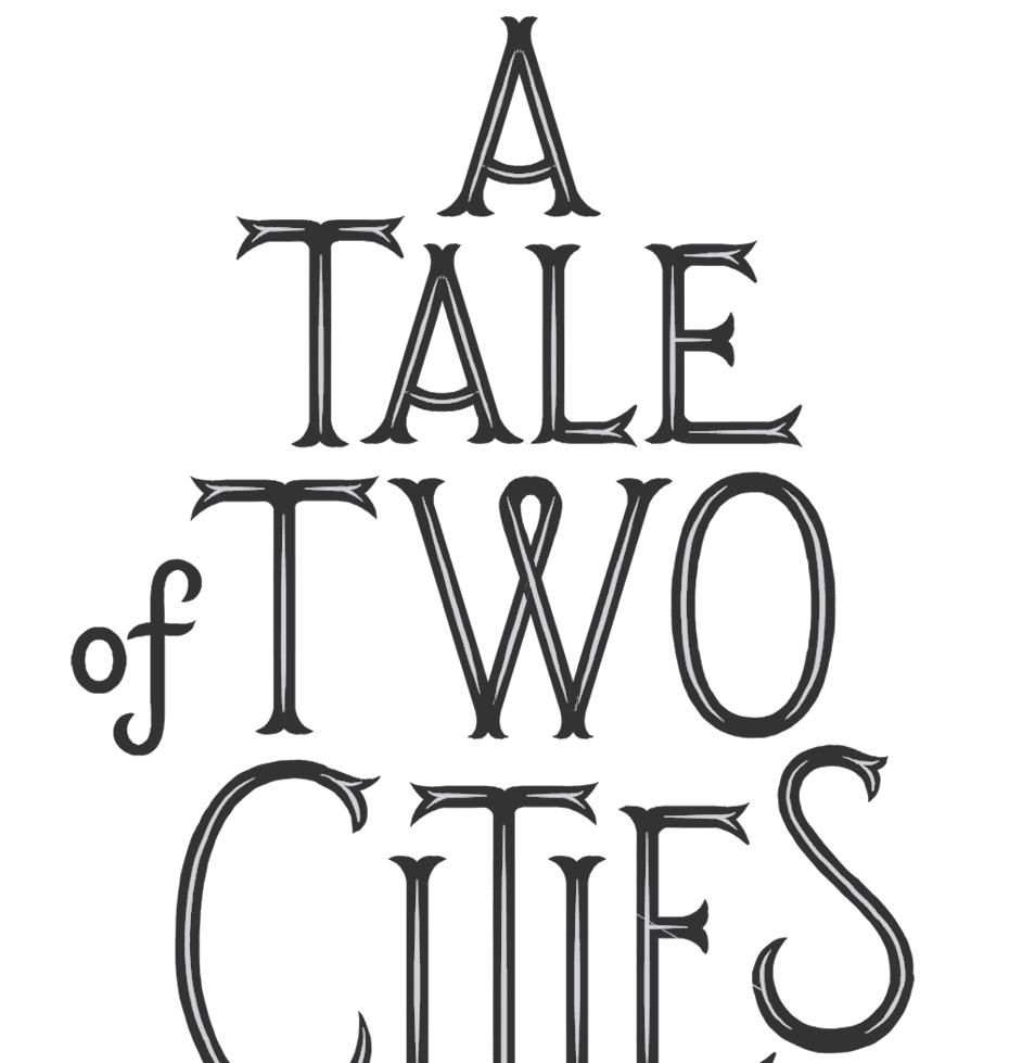 The wine was red wine, and had stained the ground of the narrow street in the suburb of Saint Antoine, in Paris, where it was spilled. It had stained many hands, too, and many faces, and many naked feet, and many wooden shoes. Those who had been greedy with the staves of the cask, had acquired a tigerish smear about the mouth; and one tall joker so besmirched, his head more out of a long squalid bag of a night-cap than in it, scrawled upon a wall with his Wnger dipped in muddy wine-lees–blood.
