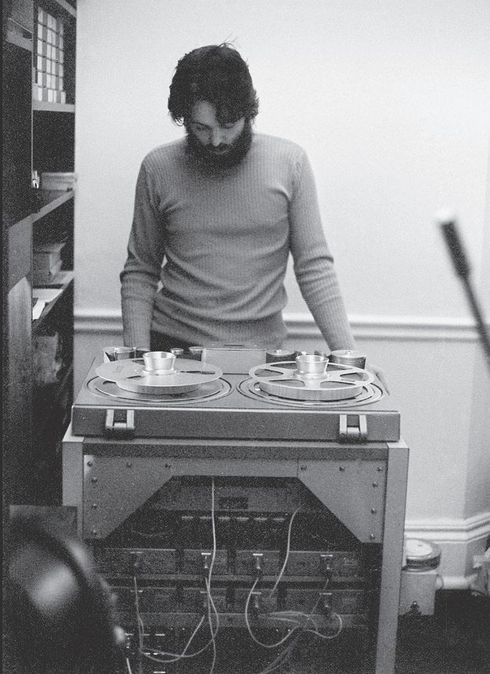 MICHAEL M c CARTNEY: He’d go to his house in London, in St John’s Wood, and all these machines would be all over the room, with these tapes going right across the room – these long tapes would go to another machine. He would be experimenting with sound. And he’d be listening to crazy Stockhausen [experimental German composer Karlheinz Stockhausen] and whoever else. Crazy sounds, because of that newfound freedom. You’re not restricted to producing the next number one, so that freedom goes into the mind. I was going to say ‘mindless’. But I mean ‘open’, ‘free’.