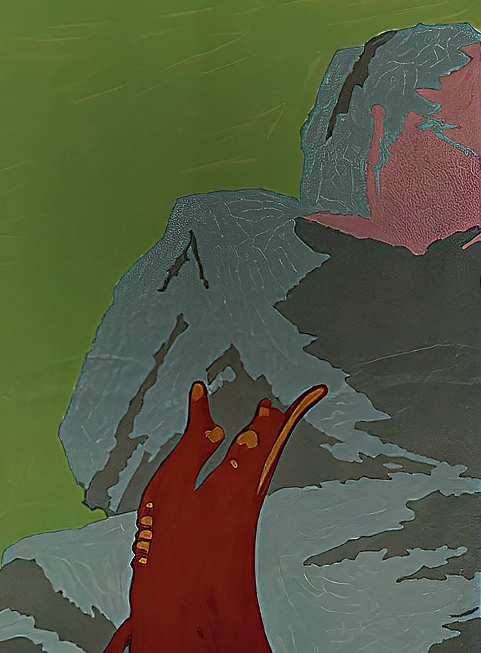 Turning, we saw an ancient Dodge parked by the curb, and behind the wheel sat a short, barrel-bodied individual, with hamlike hands and a great, leathery, scowling face surmounted by a jauntily tilted peaked cap. He opened the door of the car, surged out onto the pavement, and waddled across to us. Then he stopped, scowling even more ferociously, and surveyed the group of silent cab drivers.