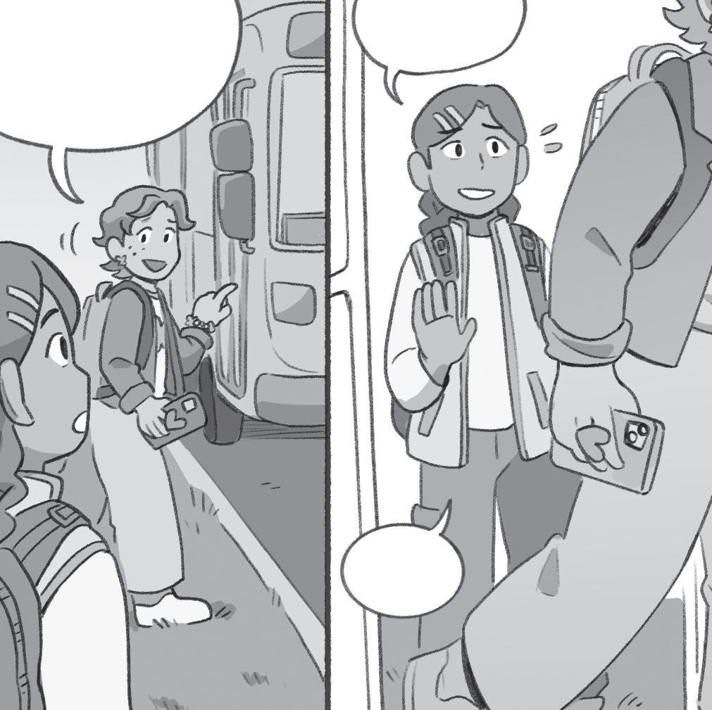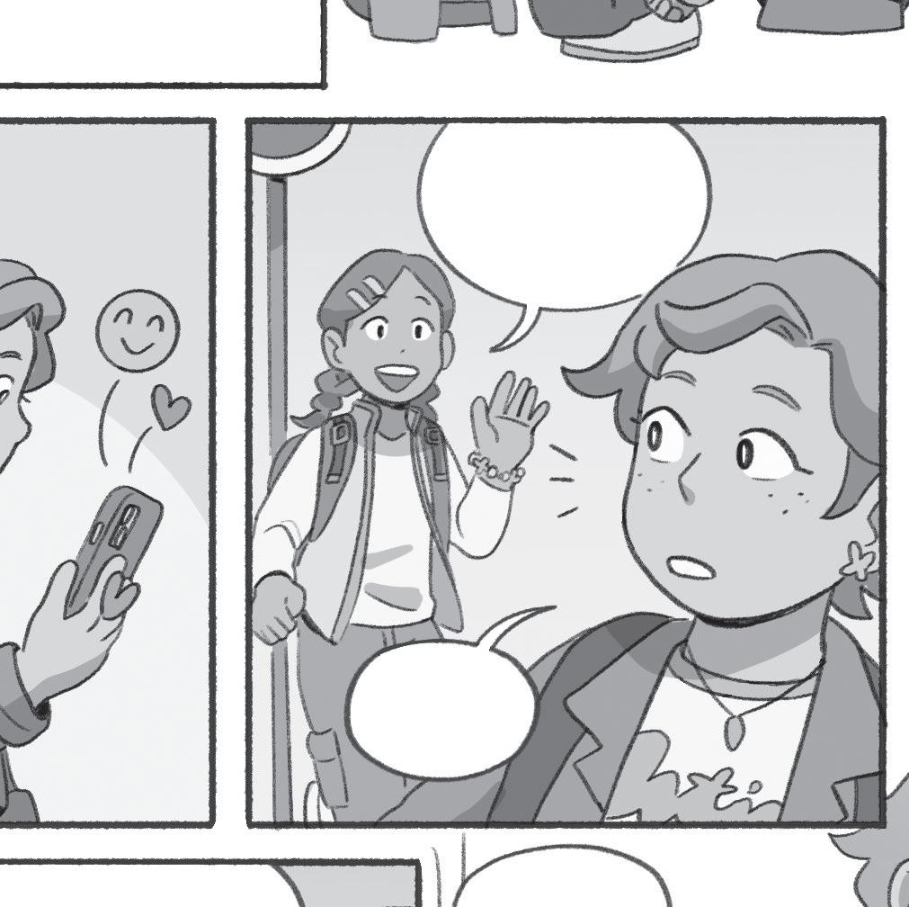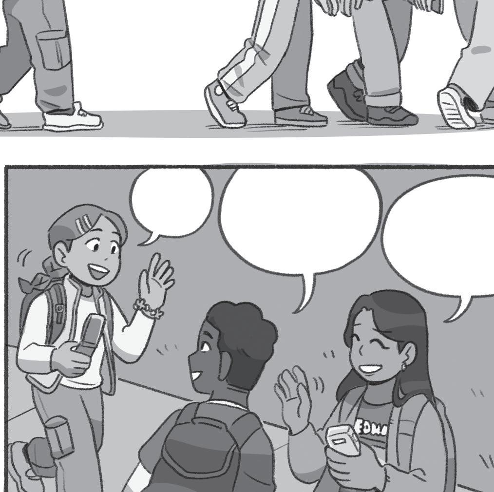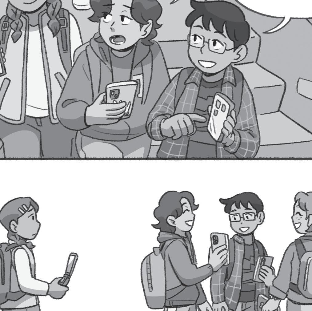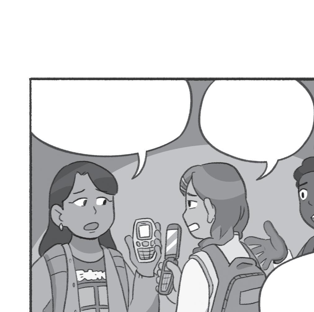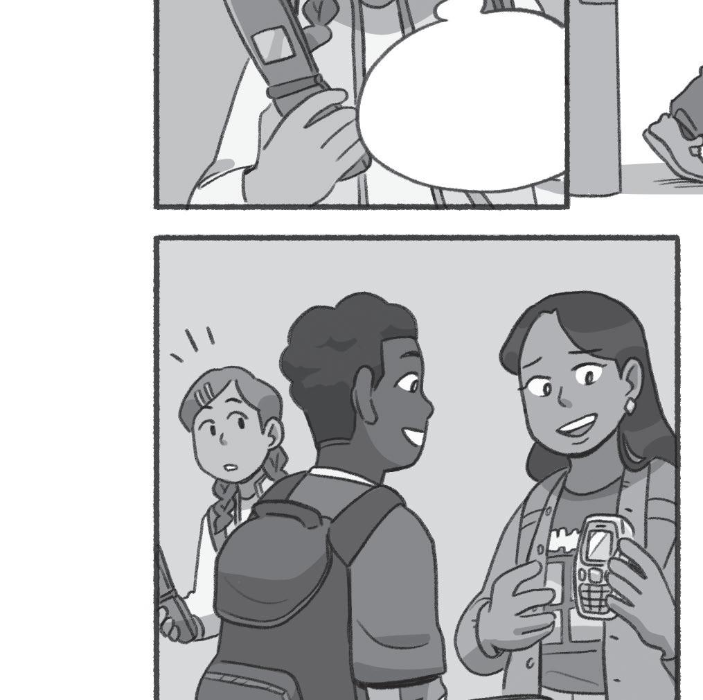 Hi, guys. Heey, Callie! Is that a... flip phone? I got stuck with a boring one too.