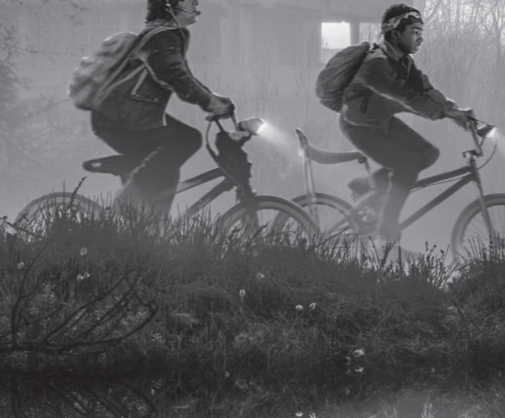 Will pedaled fast. He not only caught up with Lucas and Dustin, he blazed past them like a blur. He eventually found himself as the only rider on a long, empty stretch of road. e streetlights got farther apart. e hum of crickets