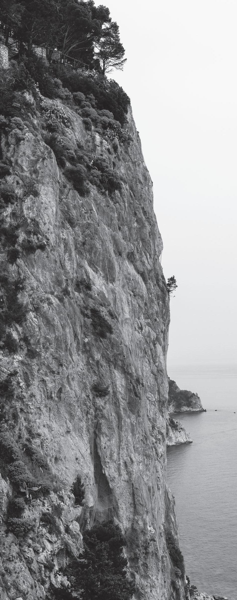 IJOIN THE LINGATES ON THE DOCK. I DON’T HAVE A CHOICE. NOT really. None of us look back. Ahead, the Marina Grande spills toward the sea. Cafés are bloated with tourists and Italians who soak up the sun. Workers and visitors wait on ferries, clustered under what little shade is available. I try to enjoy it, but also to memorize it—where the boats pick up, the location of the ticket kiosk, the areas that are most crowded. Only the unforgiving sun distracts me, softens my bones. As if with the next step, I might buckle onto the stone. Surrender.