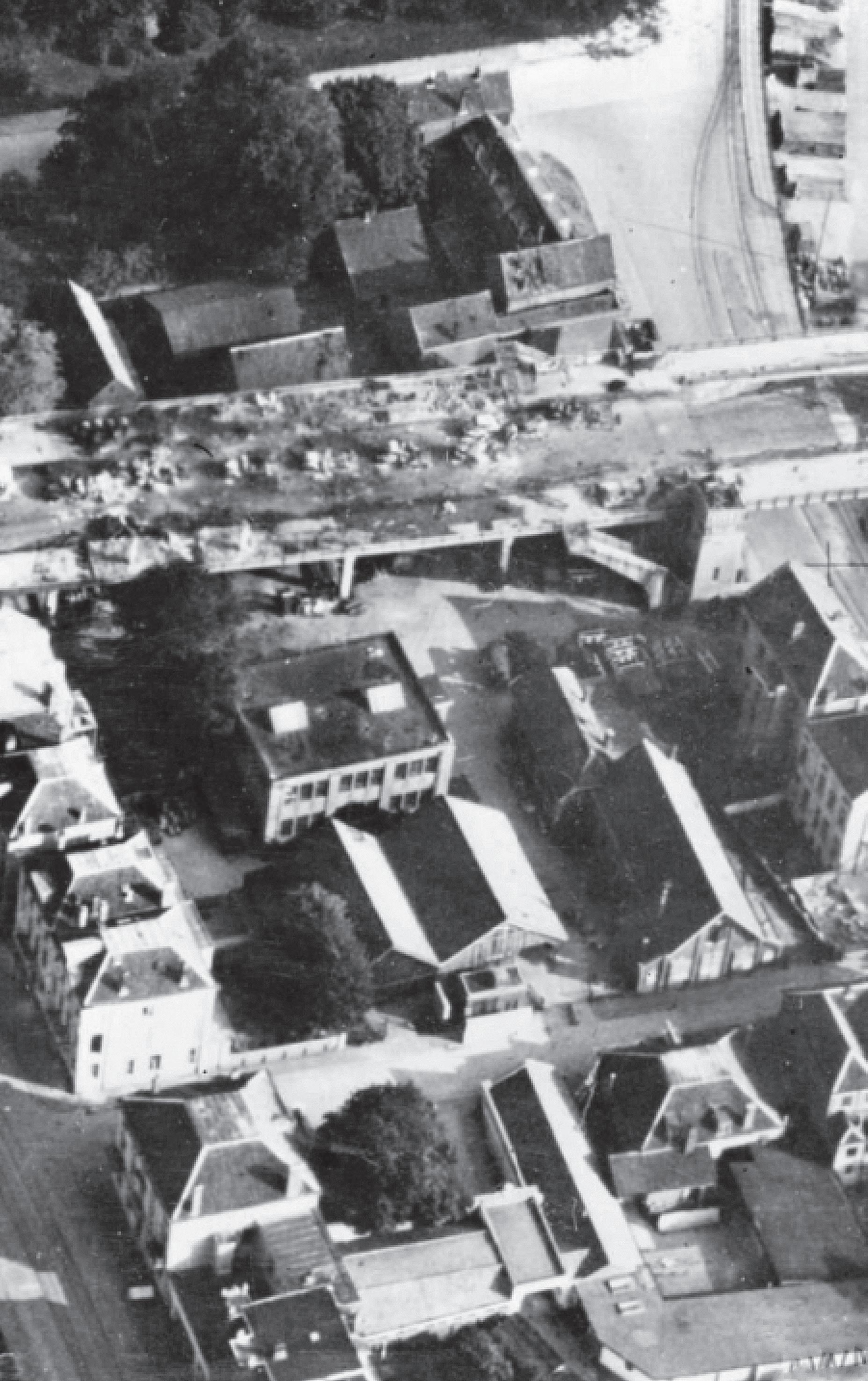 Although this is a modern aerial view, the underlying terrain is basically unchanged from 1944. Map base © Google