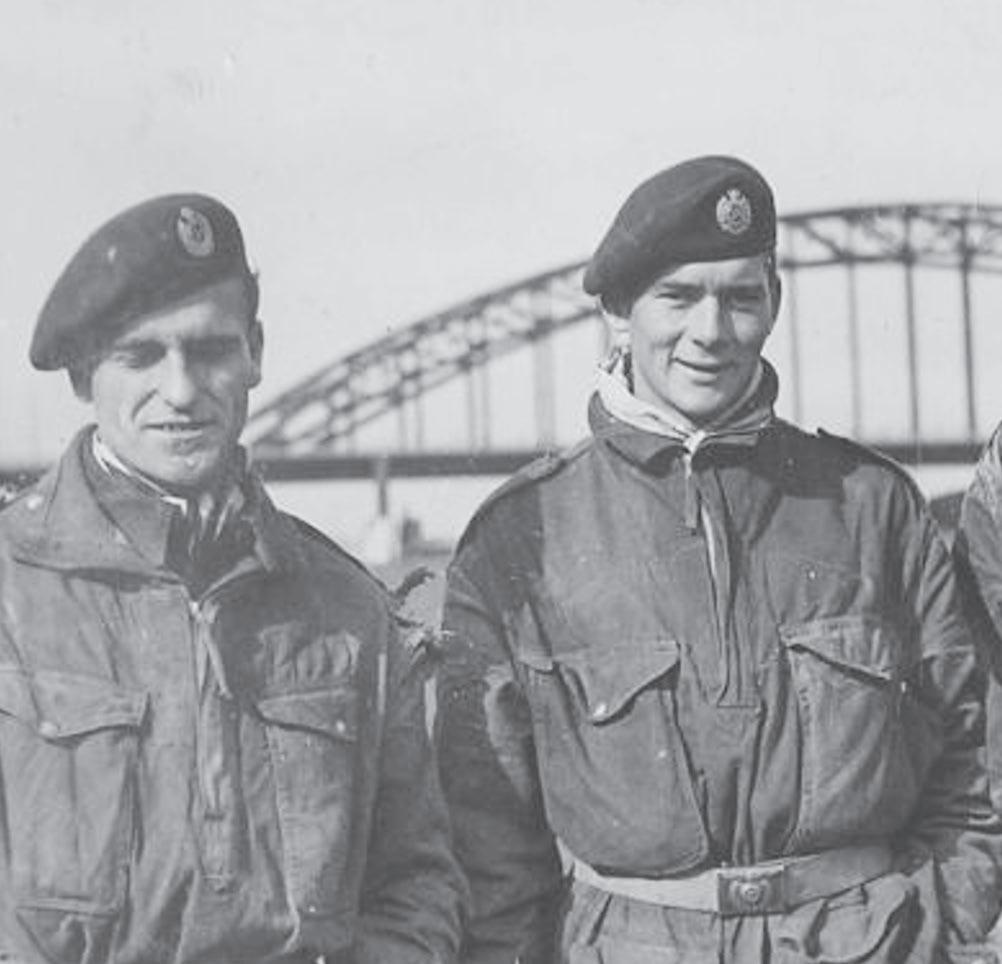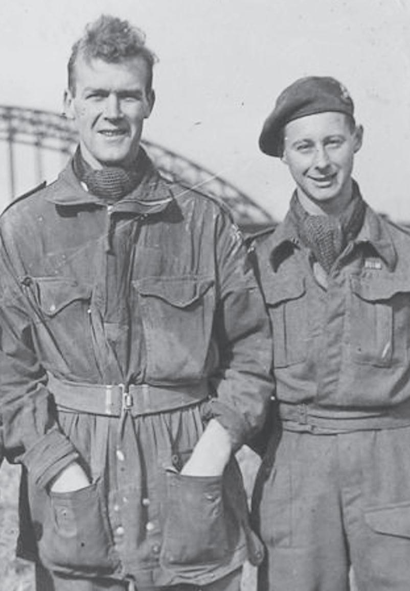 Captain Eric Mackay (right) of 1st Parachute Squadron, Royal Engineers, spent Tuesday fighting in and around the school on the eastern side of the ramp that ran north of the Bridge into the Town, ignoring a piece of shrapnel in his foot.
