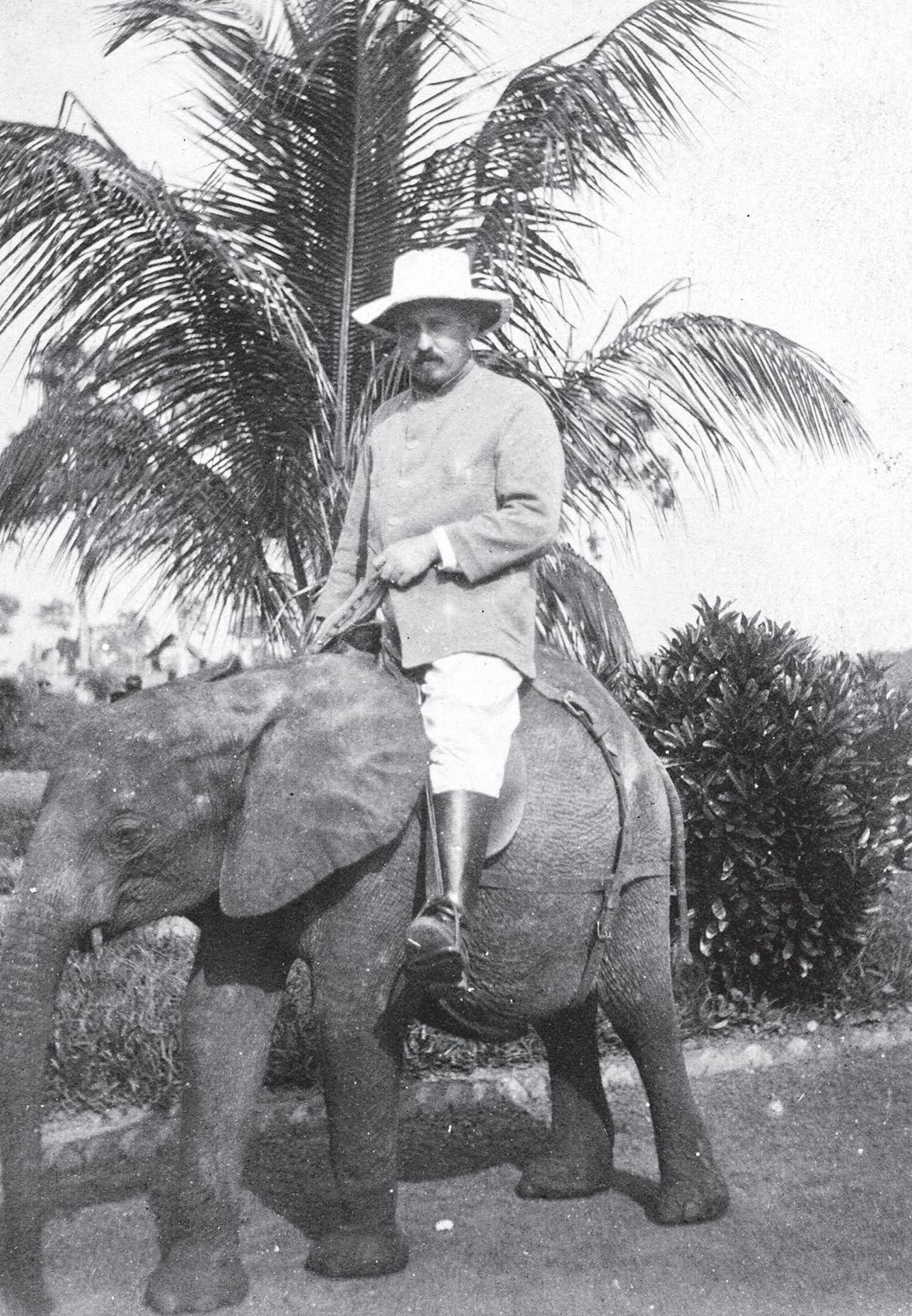 trained recruits were largely used for cultivating fields. Soon ‘elephantdozers’ were being used to construct the Route Royale – the Belgian portion of the Great Central African Highway – and the new colonial railways. Even local missions found a use for elephants. At Buta, three hundred miles west of Gangala-na-Bodio, an ad hoc operation was set up by missionaries, successful in large part due to the mission’s wildlife expert, Brother Joseph Hutsebaut. A kind of Doctor Dolittle character, he was among the first Europeans to successfully raise an okapi in captivity. I got in touch with Hutsebaut’s descendants, who explained how their ancestor had cared for elephants captured by locals. His work wasn’t commercial, but I found images of elephants from other sources hauling timber for missionaries.