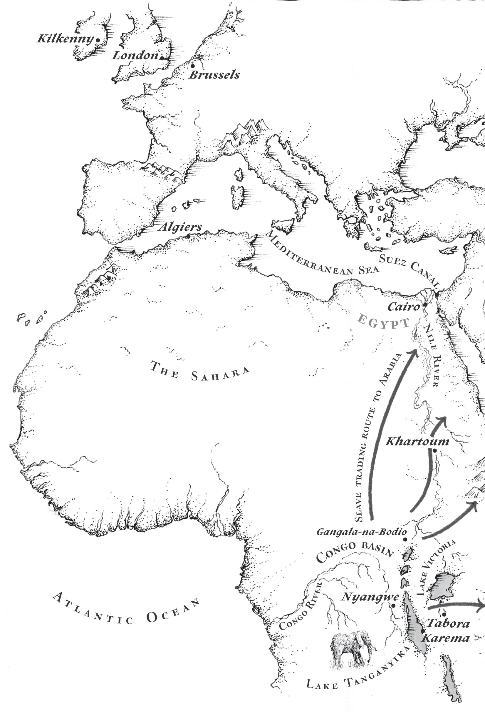 The main thrust of the expedition’s journey begins in Zanzibar. The route then winds from the shores of East Africa to Lake Tanganyika, the border territory where modern Tanzania rubs up against the DRC. Tanzania was called German East Africa from 1886 to 1916. After the First World War, the region came under British control, and was known as Tanganyika Territory. In 1961, the country gained its independence, and following union with Zanzibar in 1964, became the United Republic of Tanzania. The turbulent nomenclature of the DRC (which is a different country from the much smaller Republic of Congo) is another story. The region was called the Congo Free State from 1885 to 1908 when it was in the private ownership of King Leopold II of Belgium, and the Belgian Congo from 1908 to 1960. With independence came a new run of names in rapid succession, including Zaire. For simplicity, I’ve generally used ‘Tanzania’ and ‘Congo’ throughout. The colonizers, it would seem, didn’t let their ink run dry in the African sun. When they weren’t sweating off a malarial fever, they were filing trunkfuls of official reports, field journals, letters and newspaper articles to their consuls, editors and benefactors. This abundance was a direct reflection of literate power at the time, composed in English, French, German and Arabic. I’ve relied on those written sources from the 1870s and 1880s, which are detailed in the Select Bibliography and Notes. Meanwhile, the African oral tradition, and the role of intermediaries, guides and interpreters, was largely unacknowledged by nineteenth- century European documentarians. With a few exceptions, Africans were rarely named, and often not in full. I’ve tried to find a better contemporary balance with oral history, although I know there are problems with representation (women, for instance, aren’t given the same
