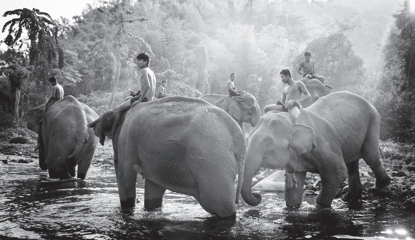 Logging elephants in Katha in 2018, in the same Burmese forests where a young George Orwell worked for the imperial police. Each evening, I’d watch the elephants bathe as the mahouts sang to them.