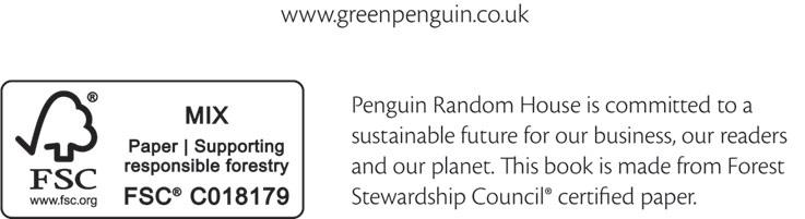 Penguin Random House values and supports copyright. Copyright fuels creativity, encourages diverse voices, promotes freedom of expression and supports a vibrant culture. Thank you for purchasing an authorized edition of this book and for respecting intellectual property laws by not reproducing, scanning or distributing any part of it by any means without permission. You are supporting authors and enabling Penguin Random House to continue to publish books for everyone. No part of this book may be used or reproduced in any manner for the purpose of training artifi cial intelligence technologies or systems. In accordance with Article 4(3) of the DSM Directive 2019/790, Penguin Random House expressly reserves this work from the text and data mining exception.