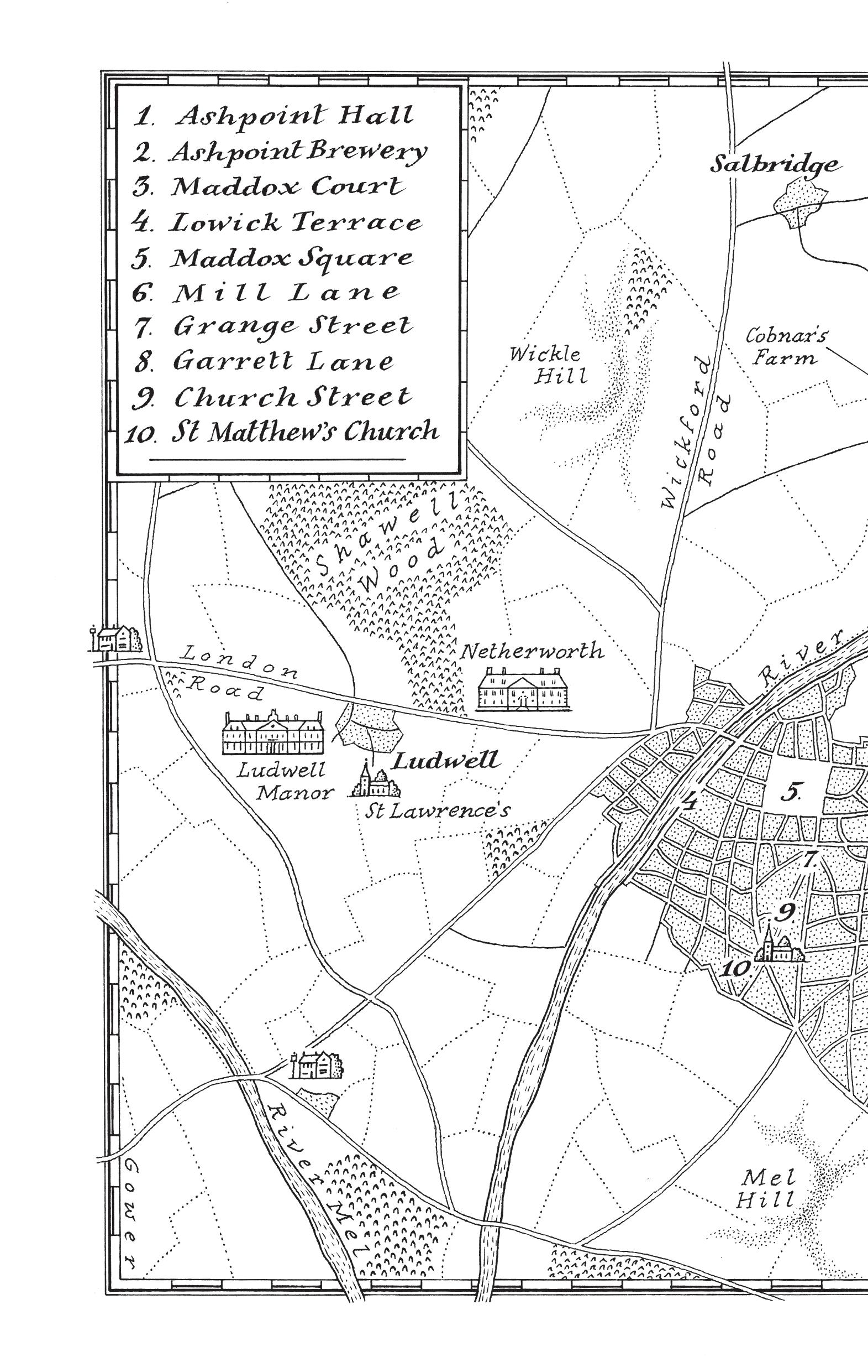 There was a great division in this quarter of Wickenshire, as in all such places, between the county families and the townsfolk. Amongst the respectable society of Melford and its surrounding villages – amongst those of enough signifi cance to be invited to this evening’s ball – some were county and some were town . The Eltons, the Wickfords, the Hammersmiths and the Hursts were county – they were old, respectable families with their own estates, far above the likes of the Craytons, the Palmers or the McNeils, all of whom lived within Melford itself. As for the Ashpoints – well, who could say? They had the largest house for miles
