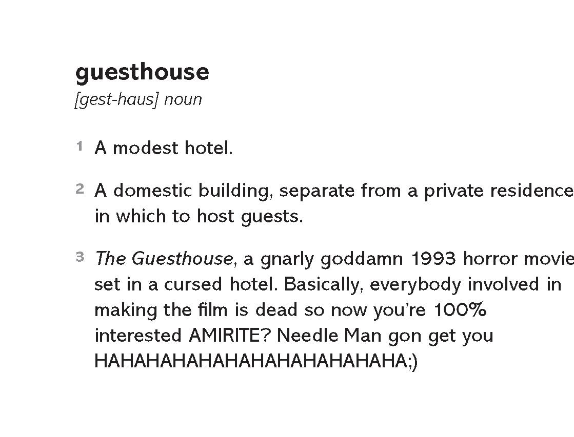 Years ago, in a moment of morbid curiosity, she’d read a couple of articles about the fi lm online and felt sickened by what she found. They all wanted to know one thing: How had the movie fucked her up? What scars remained? Was that why she retreated from the limelight, never to be seen again? All in order to escape the shadow of The Guesthouse ?