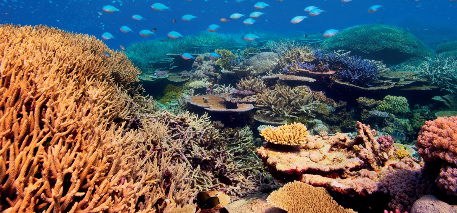 Tropical coral reefs exist in shallower, warmer parts of the oceans, usually not far from land. The reefs are made up of millions of corals, which are tiny animals rooted to the seabed. Coral reefs provide plenty of food and protective cover for many other creatures, so they become very crowded, leading to competition between all the animals that live there.