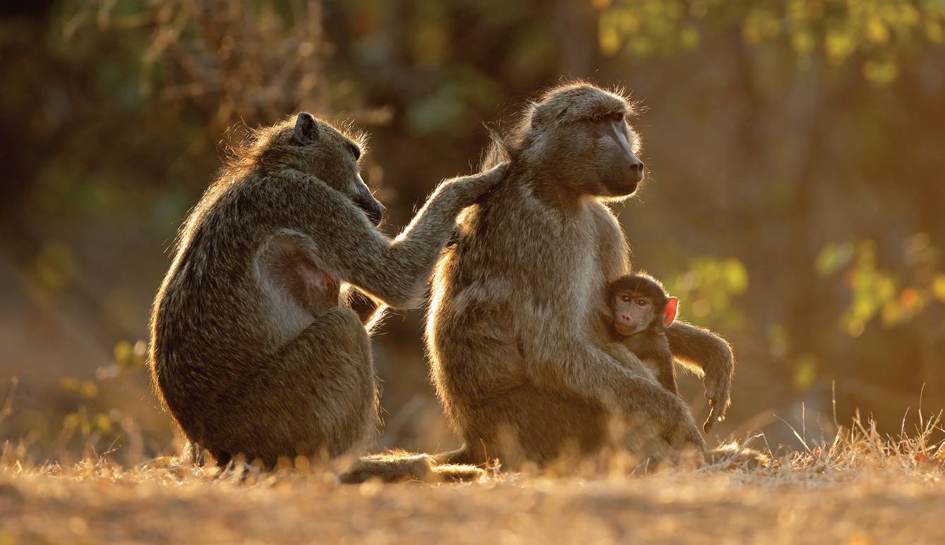 Like all mammals, a chacma baboon mother needs water if she is going to produce enough milk for her newborn – which is really hard in the desert landscape. Who gets what little water there is relies on a pecking order. A mother will travel many miles with her troop and risk many dangers to be able to feed her baby.