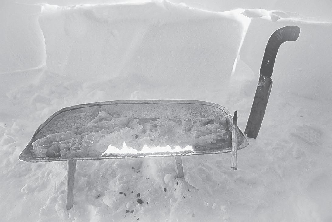 taqquti. The perfectly trimmed flame of the qulliq was a visual manifestation of a woman’s strength, representing her devotion, love and care for her family, but most importantly the qulliq was and still is a symbol of human survival, just as the campfire is in a remote forest.