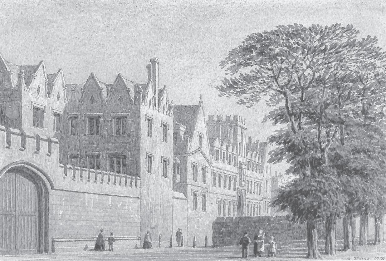 St Johnâs College, Oxford, where Edward Palin was an undergraduate and a Fellow. A watercolour of the St Gilesâ front by George Pyne, c.1870.