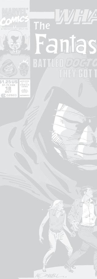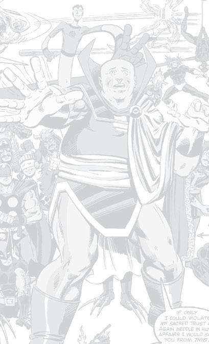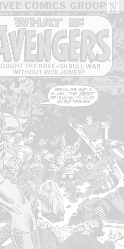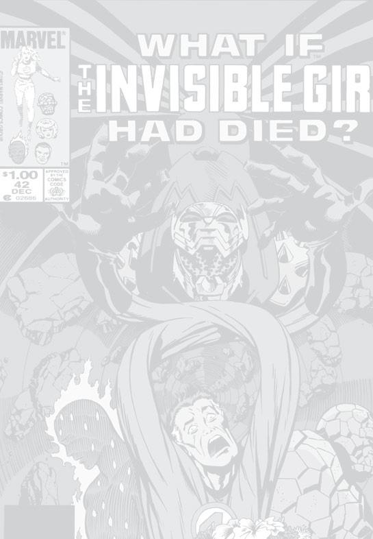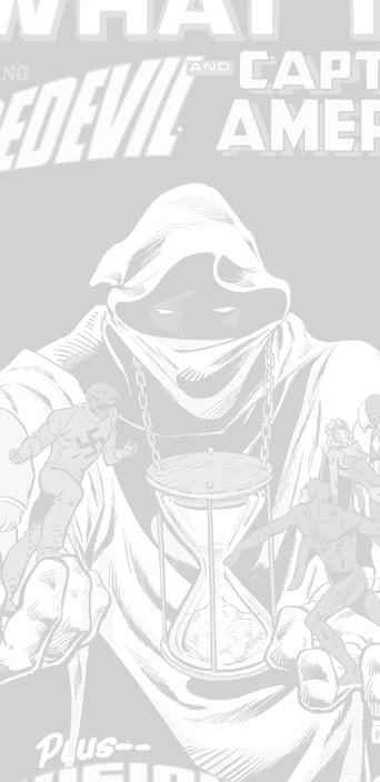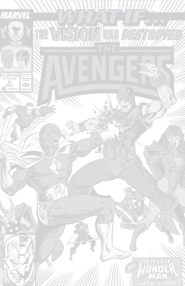 time, in a universe that exists between word and definition, where all understanding is born, a woman stands watching a mirror that is also a window as it cuts from the hectic activity in the Avengers Manor to Wanda, who is now falling through the red-light void of infinity. Watching Wanda when she moves through chaos requires tricking the mirror into stacking universe inside of universe, a fractal chain of possible realities that is its own kind of chaos. She can’t do it for long, but it feels important to keep an eye on this Wanda, especially since her mirror sought out the young heroine of its own accord. This is a Wanda at the beginning of her heroic career, in her early twenties and still unbruised in some foundational ways. This is the age where Wanda almost always joins the Avengers, universe after universe, world after world.