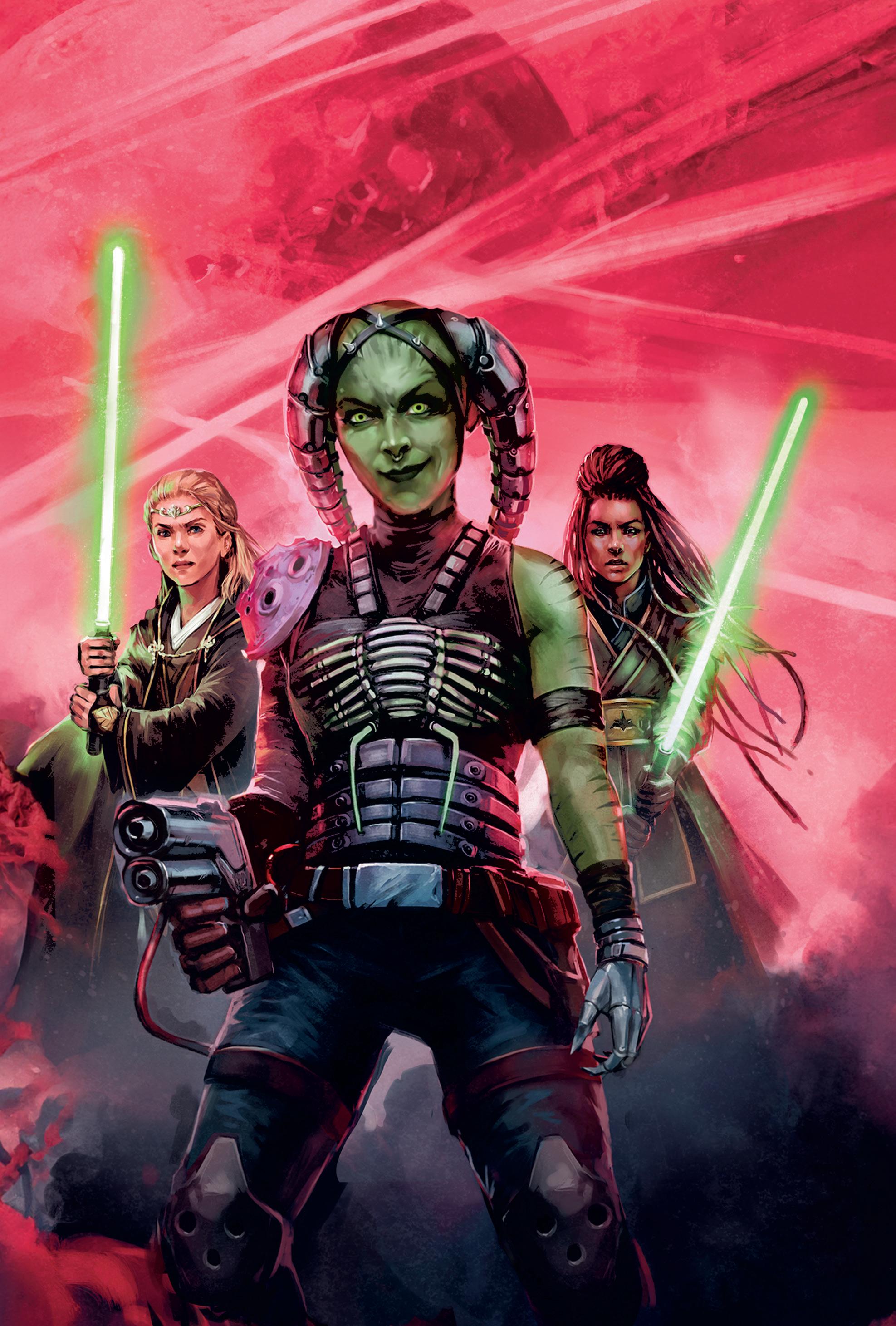 FX: e lightsaber is held by Faris Karan, the fallen Jedi’s Padawan, the plasma blade across Quin’s throat. Faris tries to appear calm, but there is a tremor in her voice. She is nervous . . . and worried about her master, Carana-Vey Trana, not to mention unaware that she is being a ected by the Nameless, making it even harder for her to be the Jedi she wants to be.