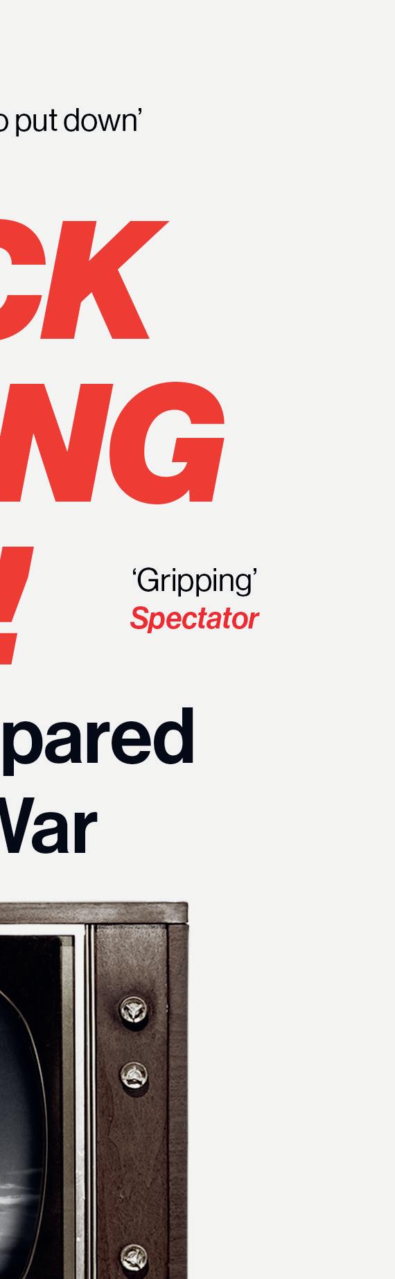 These shiny new things suddenly seemed fragile. If the British exhaled a sigh of relief at the end of the Second World War, they drew their breath again at the cold clang of the Iron Curtain. A new world had arisen, and this world was nuclear. Former allies became enemies, and these enemies had weapons that could kill millions in minutes. The atomic bomb soon developed into the even more terrifying hydrogen bomb. Britain’s proud long slog of the Second World War was fast redundant. The ‘ nest hour’ shrank to a four-minute warning. Everything was vulnerable and nowhere was safe – not a single street, village or hamlet; no forest, eld or valley. The new bomb didn’t care for homeowners’ prized possessions. It would jerk the curtains from the rail, sweep the clock from the mantel, hurl the car across the street. It would ignite the newspaper, melt the milk bottle and shatter the teapot. And where its res didn’t blaze, the fallout would creep, getting under the door and through gaps in the window, reaching every nook and cranny and touching children’s foreheads as they slept. As the nuclear arms race began, the British people learned not just fancy new words like Formica and Tupperware, but also megadeath and overkill