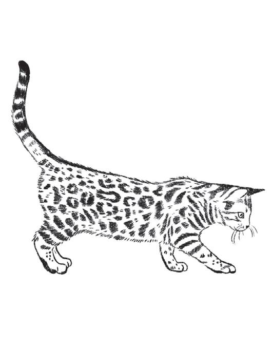According to the instruction leaflet, Kotetsu was a fourmonth-old Bengal. He sported a light-brown coat with black stripes around his face and upper arms. He had rosettes all over his back: rich brown fur ringed with black – exactly like a leopard’s spots. The glossy, short fur made the pattern pop.