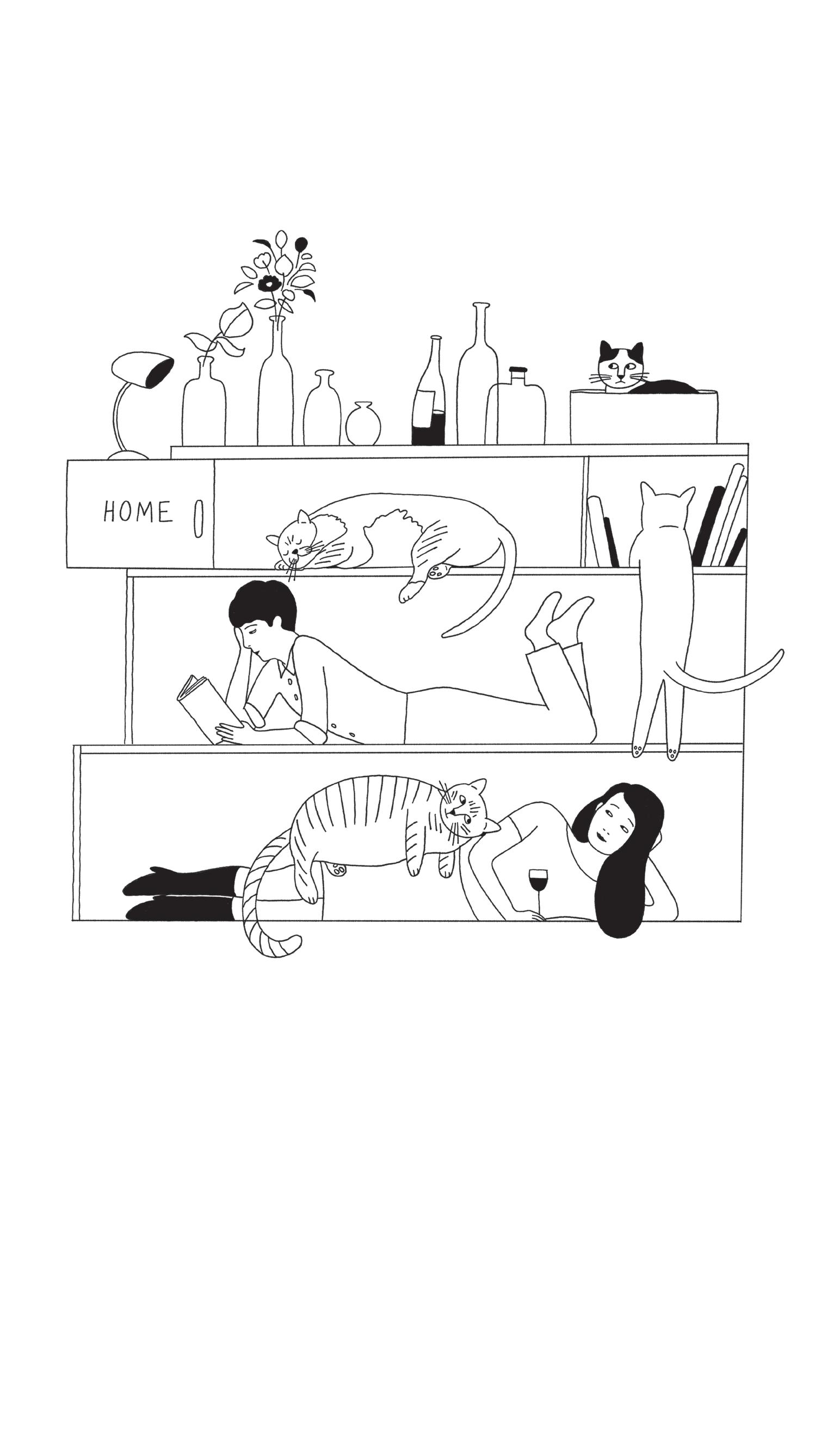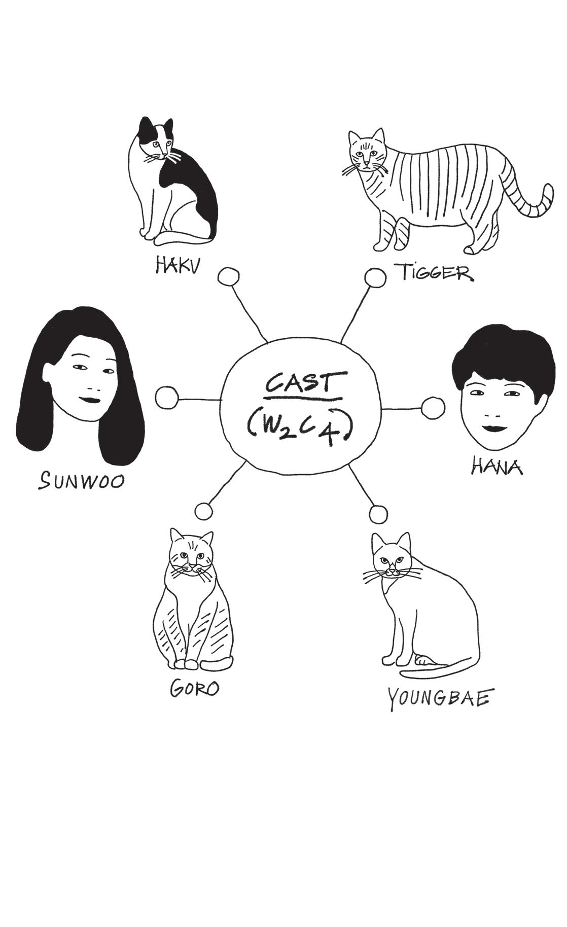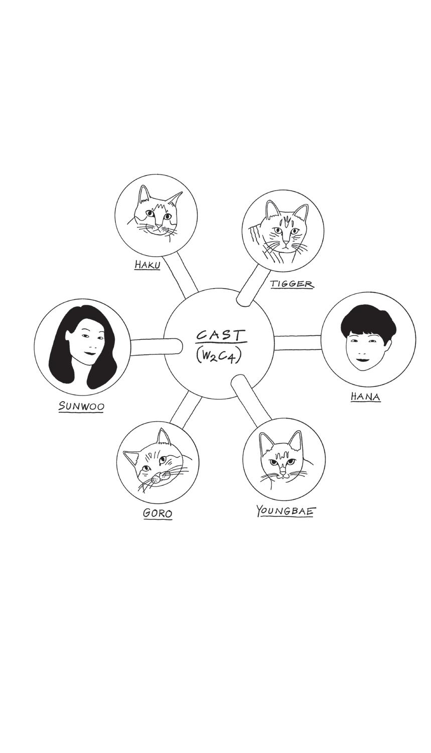 They say that single-person households make up 27 per cent of households in South Korea. I think of single-person households as atoms. It’s fully possible to lead a happy life alone. But once we reach a certain threshold, what’s stopping the individual atoms from joining forces to form a molecule? A molecule can be made up of two, three, four, or perhaps even twelve atoms. Its bond could be strong or weak. We live in a generation where the most common molecule consists of a firmly bonded woman and man. But in the future, we might see a more diverse range of configurations. For instance, in this house, we’re W2C4 – two women and four cats. And as of now, I’d venture we’re a very stable configuration.
