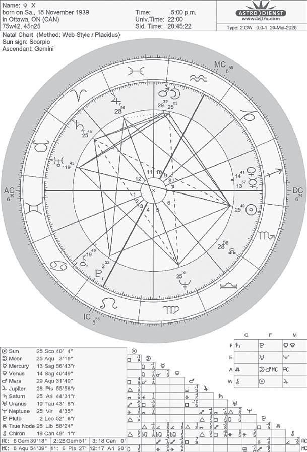 Take one look at my natal chart and you can see my character and destiny spread out before you, as plain as day. (If you don’t like horoscopes, skip this part. And the chart on the next page.)