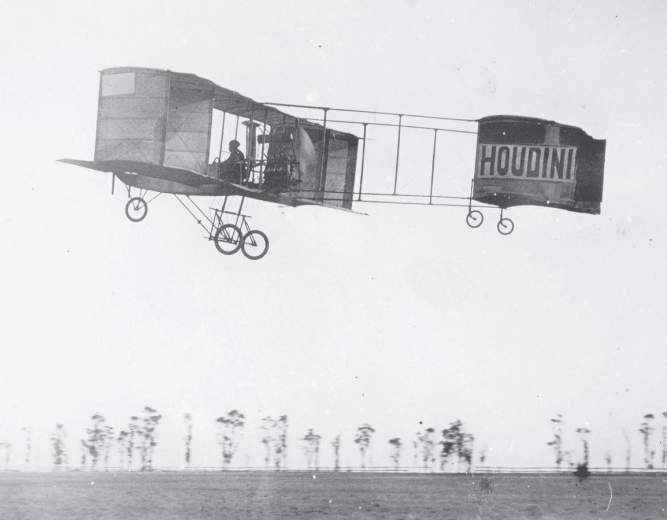 In March 1910, he experienced an epiphany when he witnessed Australia’s first aeroplane fl ights. They were made by the famous escapologist Harry Houdini over dry grassland at Diggers Rest, twenty miles outside
