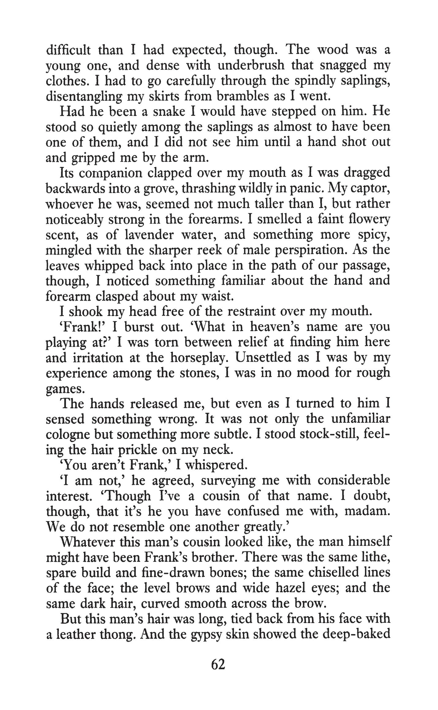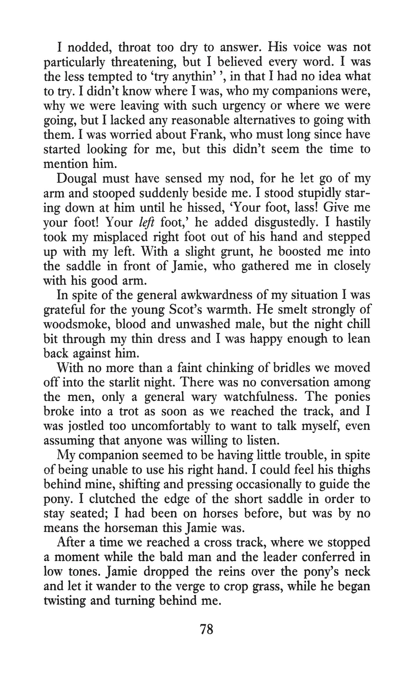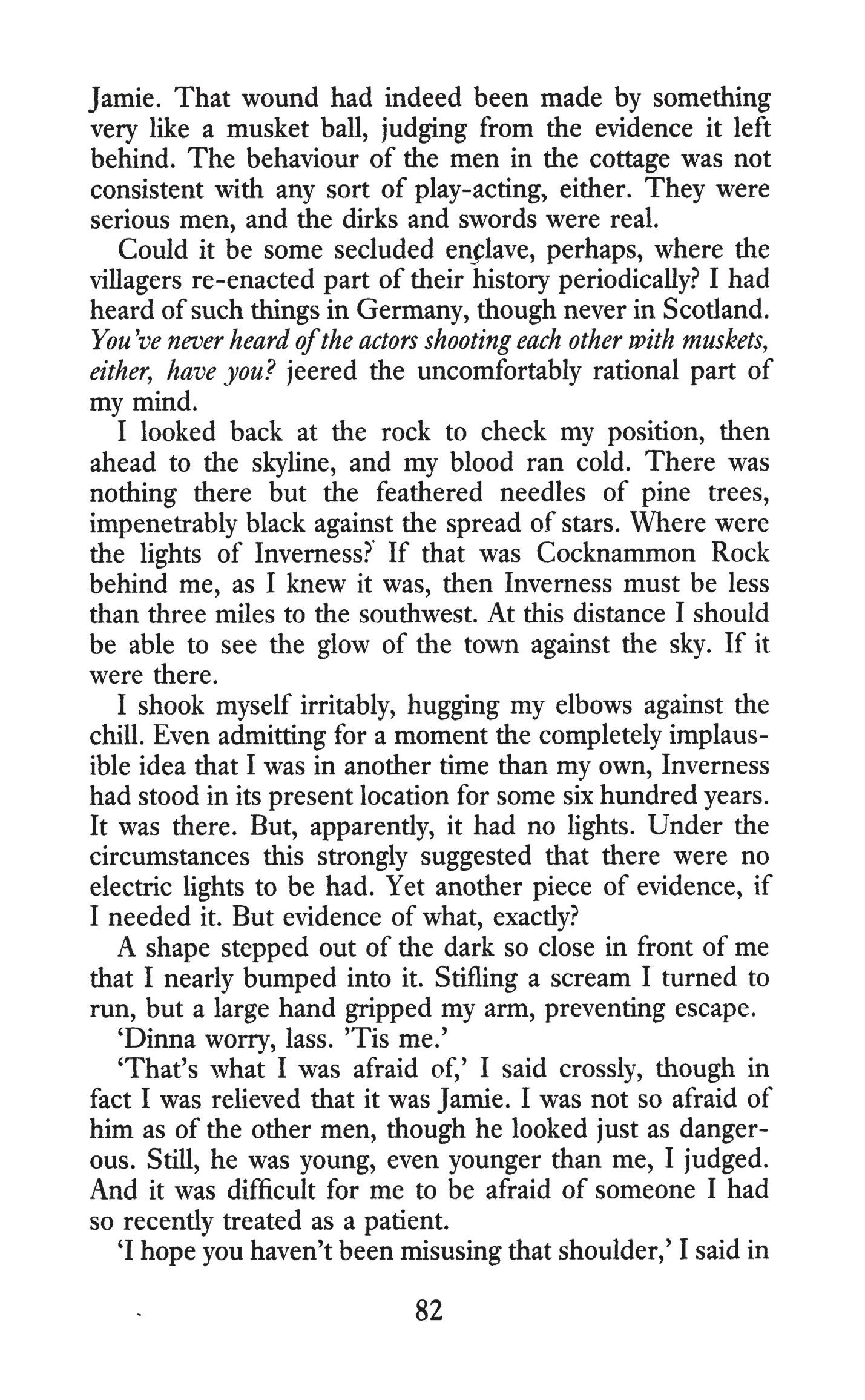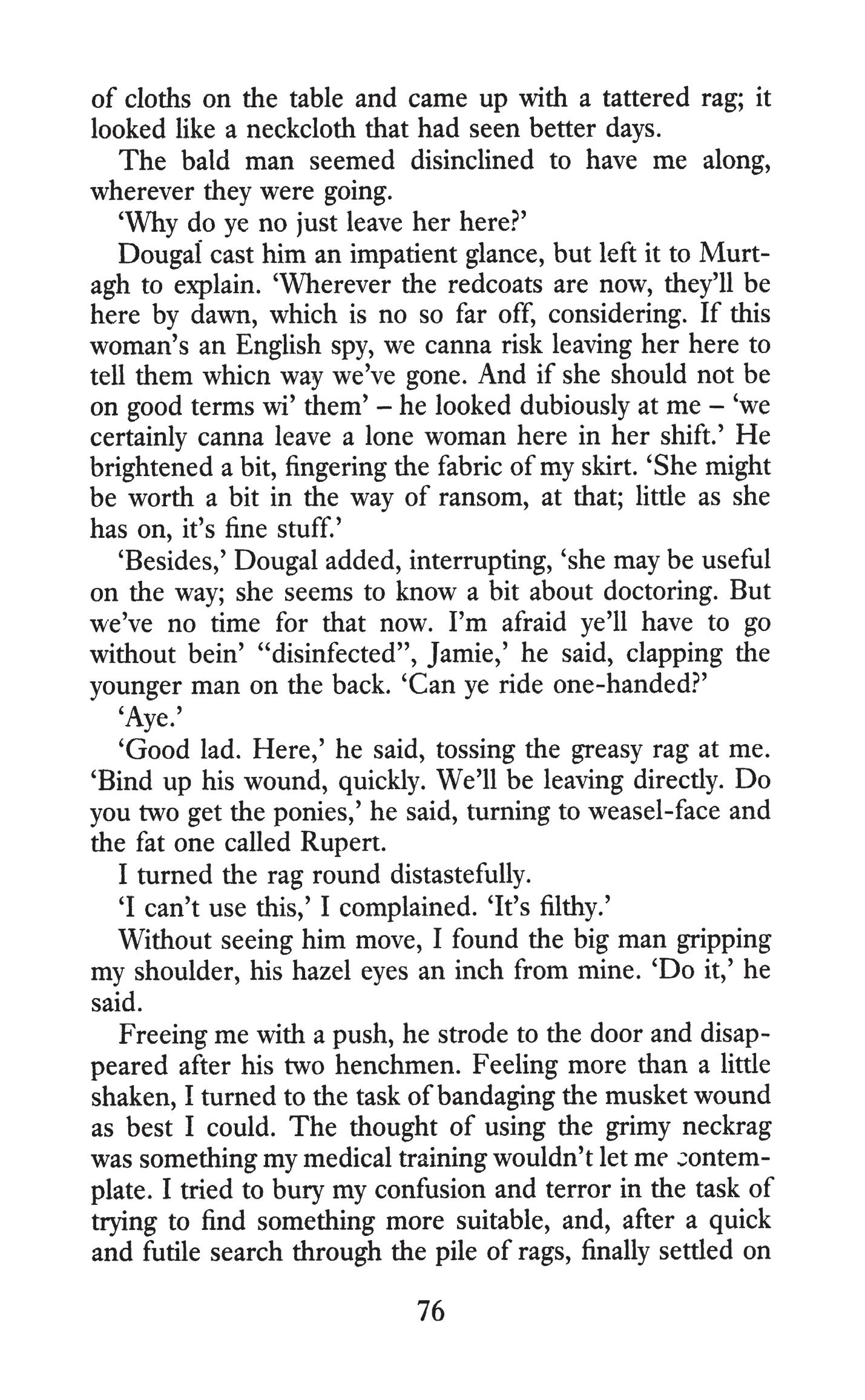Claire Randall asses through a circle of standing stones and finds herself in Jacobite Scotland, pursued by danger and forcibly married to another man – a young Scots warrior named Jamie Fraser.