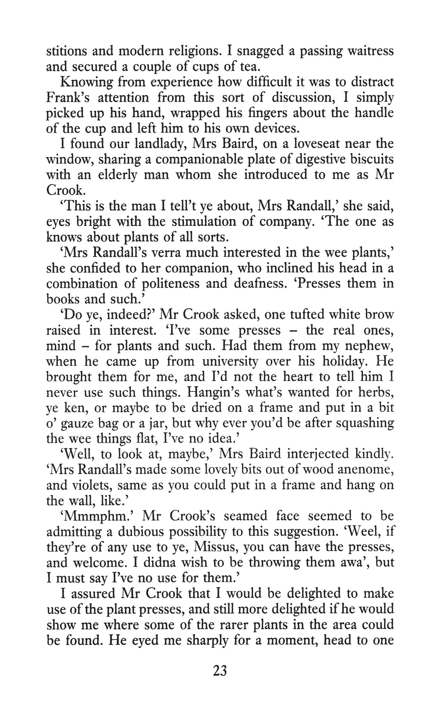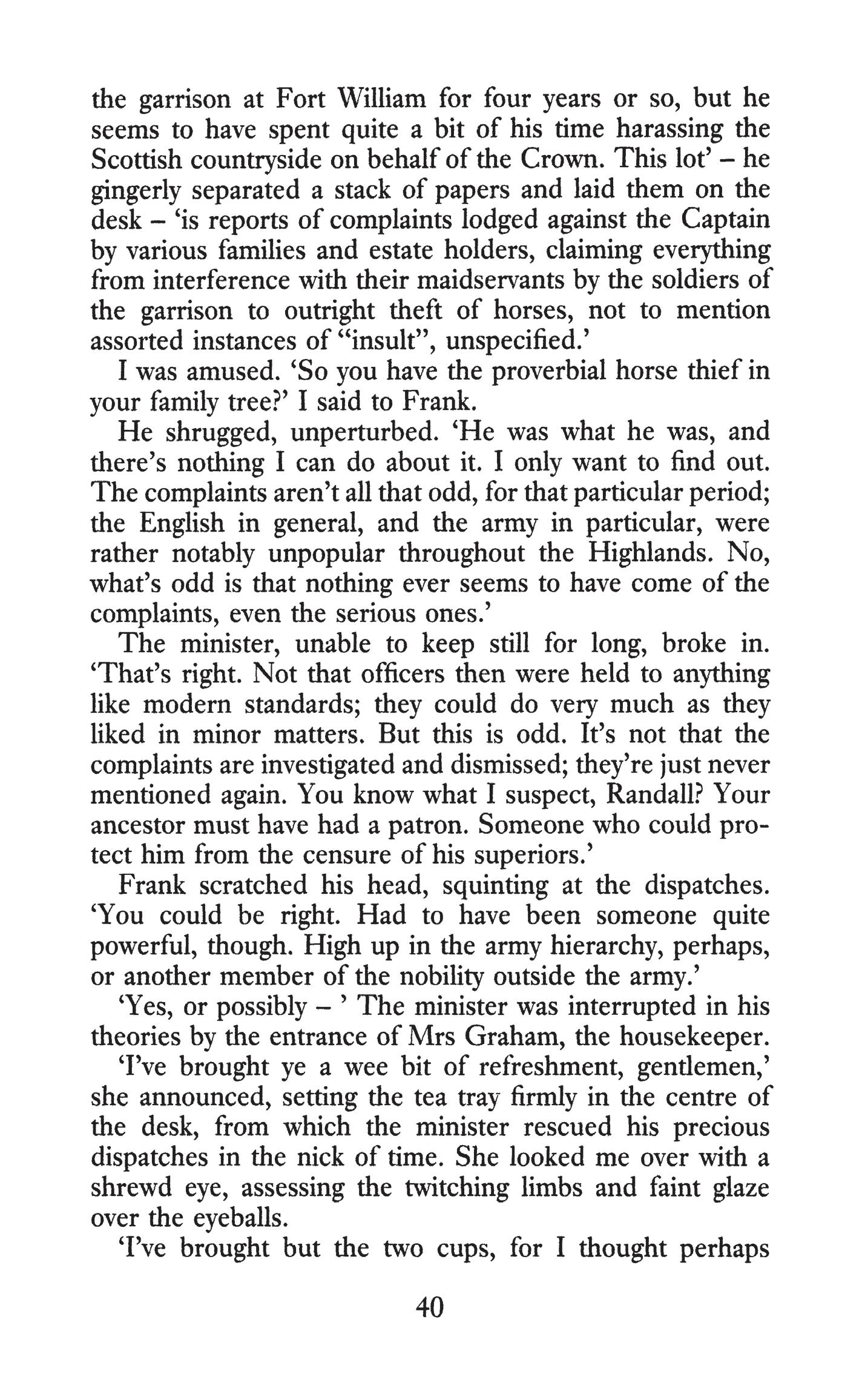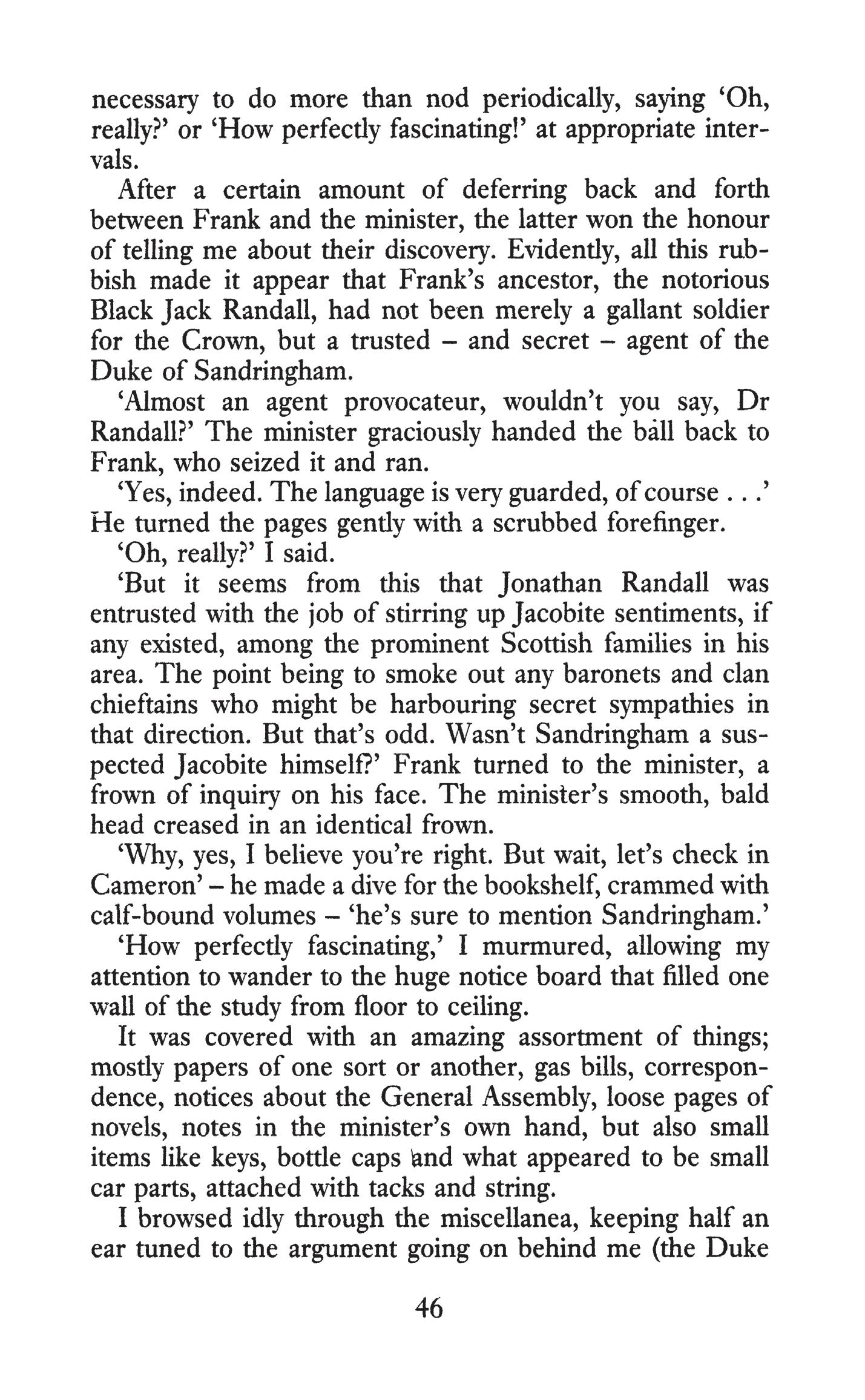 ‘Well, that’s rather fetching,’ I thought. I was still thinking about it during church the next day, and, with a mental shrug, said, ‘OK, why not? The important thing is to pick a place and get started. All right; Scotland, eighteenth century.’