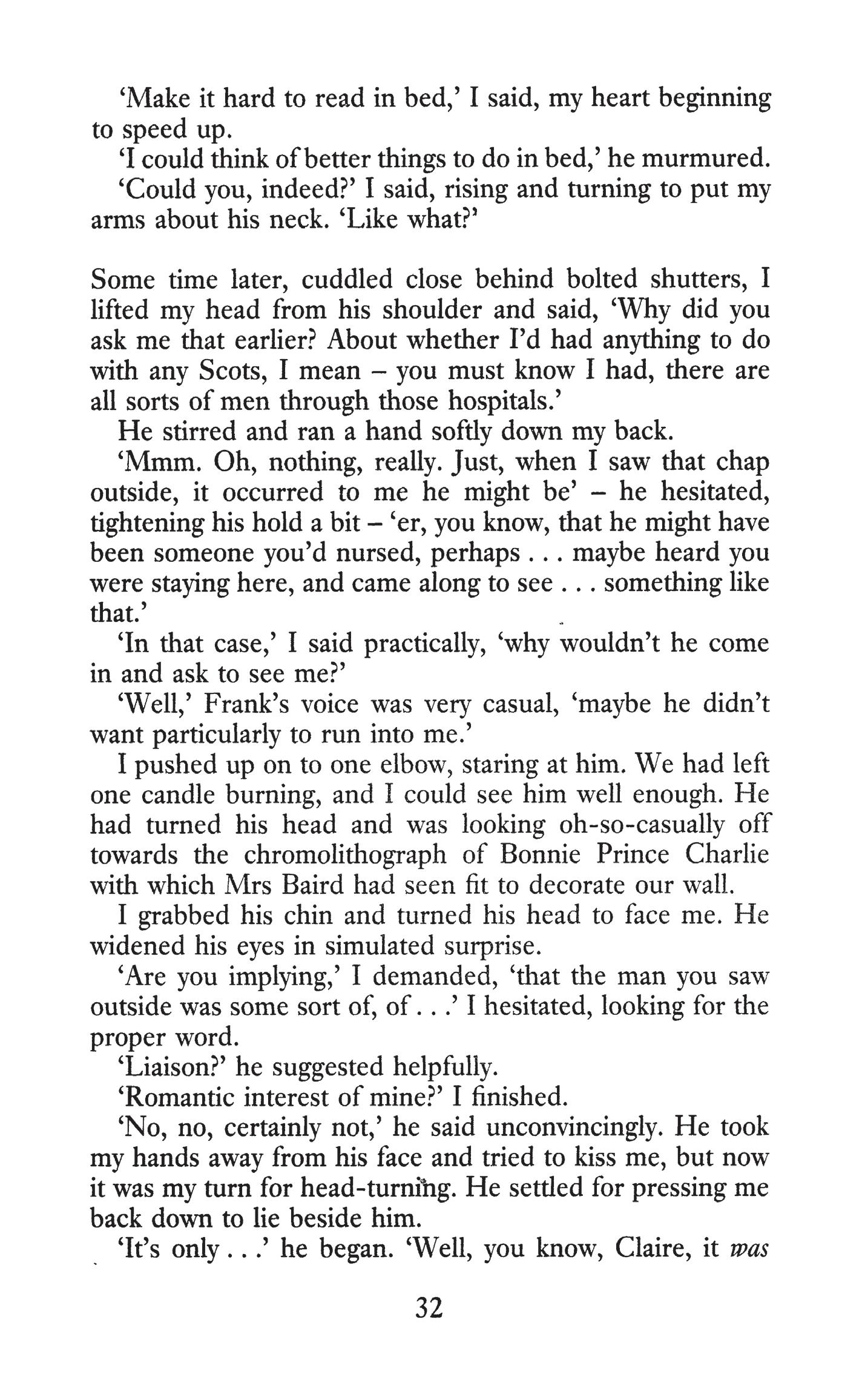 Jamie Fraser died on the battlefield of Culloden – or did he? Claire seeks through the darkness of time for the man who once was her soul – and might be once again.