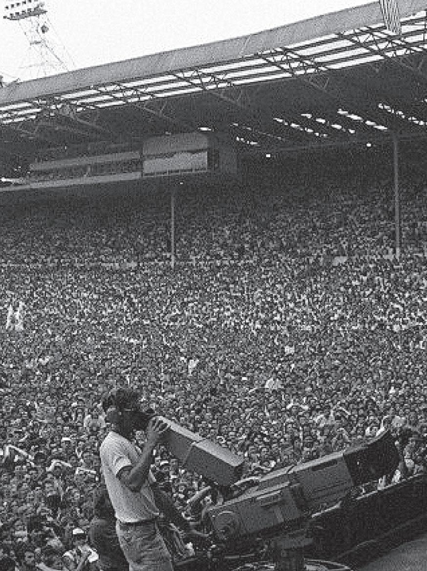 The set-up in Wembley was so pre-technological that Bob Geldof and all the other guests who filled the gaps by talking to broadcasters like me could only be interviewed if they first climbed via a series of catwalks up to a perspex box suspended in the eaves of the old stadium, the same box from which tweedy old commentators would pronounce on the goalscoring feats of footballers with perms. Wembley at the time was an old stadium which had been built for a pre-war world. Only a couple of months earlier it had been the venue for an FA Cup Final between two teams featuring only two players not born in the British Isles and only one of colour. It was mere weeks since the disaster at the Heysel Stadium in Brussels had killed thirty-nine people who had simply turned up to see a football match. In the Who’s crew that day were people who had been present at the concert in Cincinnati when eleven fans had