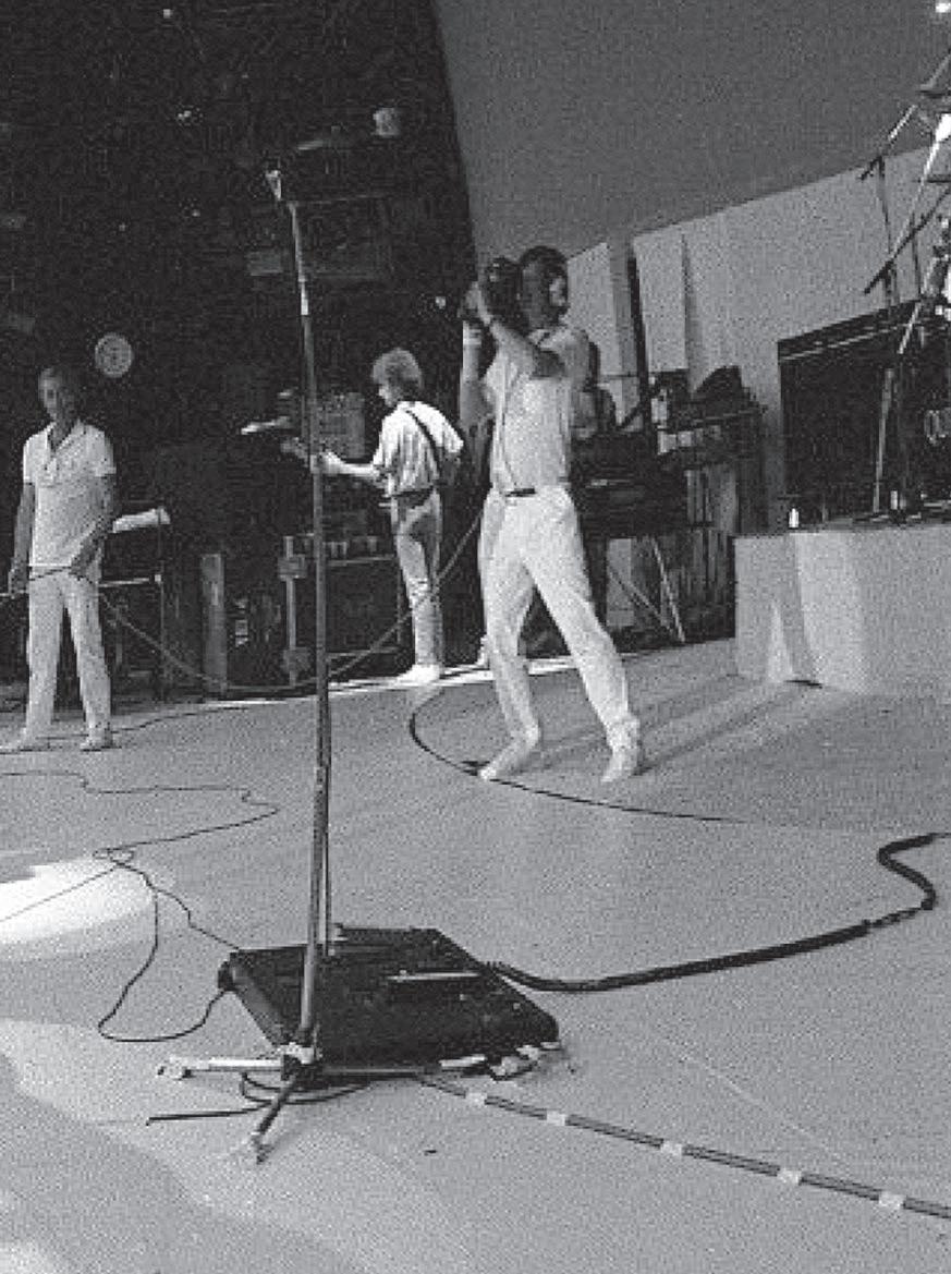 If you wish to be specific about it, the Age of Spectacle began just after half past six that evening. It was at that point that Queen, a band that had been together for fifteen years, took to the stage. Queen were the turn that went down best on the day and that was because of Freddie Mercury. Freddie was the hit of the day because Freddie, being conversant with the theory and practice of showbiz, fully understood that Live Aid was most of all a TV spectacular and as such was aimed at an audience at home, and an audience at home was certainly not in the market for a few tracks from Queen’s new album. Therefore his performance of their key crowd-pleasers was addressed directly to cameraman Bob Wilson, one of the unsung BBC craftsmen who were decked out in white specially for the occasion so that they could thread their way in and out of the performers without spoiling the picture. The heavy camera on Bob’s strong shoulder sent the images to the big screen, which was the way that most people in Wembley saw the proceedings. Wilson got so near at one point