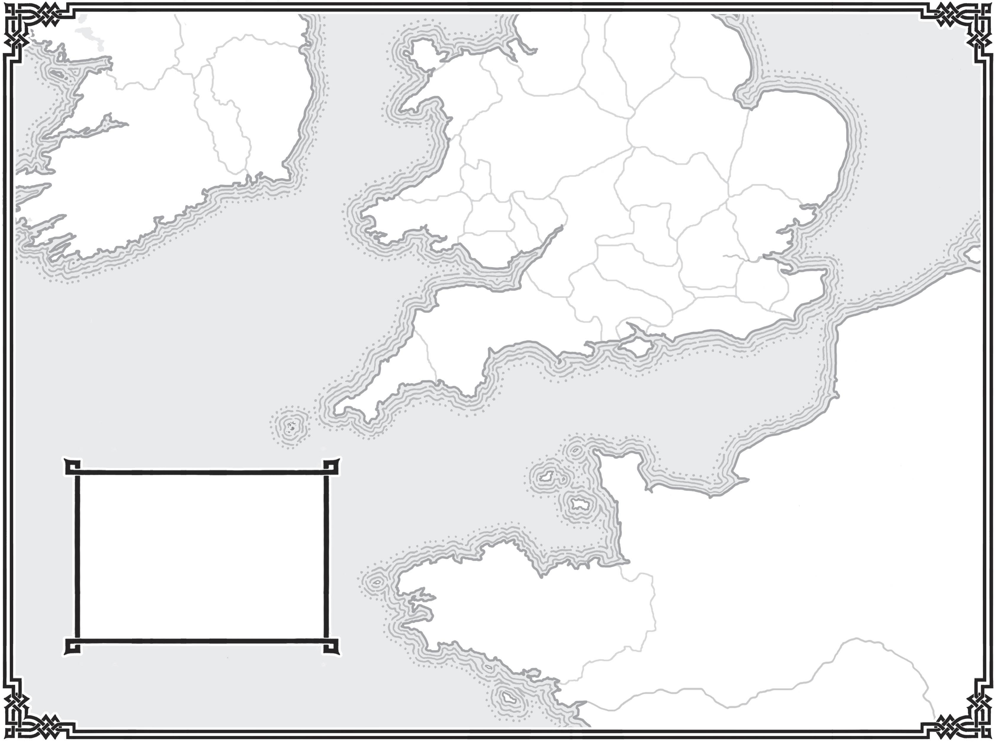 Hall Merlin’s Hall Lady Igraine’s villa 0 100 miles 50 N Lyonesse Dyf e d Glywyssing