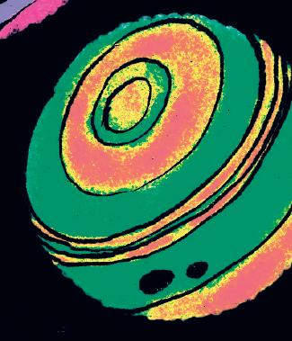 sky that, viewed from Earth, is about the size of a grain of sand. Their light took more than thirteen billion years to reach us, sending us a message from a time long before Earth was born. On its journey to our telescope, some rays were bent as they passed a massive cluster of galaxies. Matter and light interact, so this ancient light was warped into the beautiful arcs seen in the image, revealing relativity’s pull over space and time.