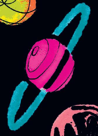 Red puffy clouds fill an orange sky, high above the purple moss that dots the few exposed islands on the horizon. Waves break on the small stretches of shore, glittering in the red light from the sun overhead. You wait for the sunset and the darkness of night, but they never come. To experience nightfall, you have to travel for days to the far side of this distant planet, a place of eternal dusk. Even farther on, the dim light recedes, turning the landscape into a never- ending night.