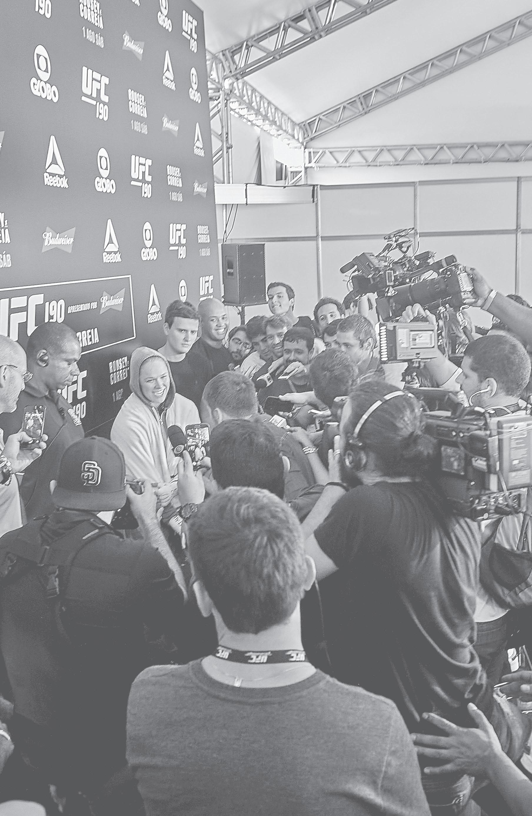 And then I went into my zone. I made weight and again submitted Miesha. My professional record improved to 8- 0. That night, at the post-fight press conference, I was seated between him and another of the night’s winners, Uriah Hall, making jokes about balls as UFC president Dana White stood at the podium telling the media that I’d be going straight back into training camp to prepare for the fastest title defense in UFC history. Before I even had a chance to catch my breath, it was right back into fight mode.