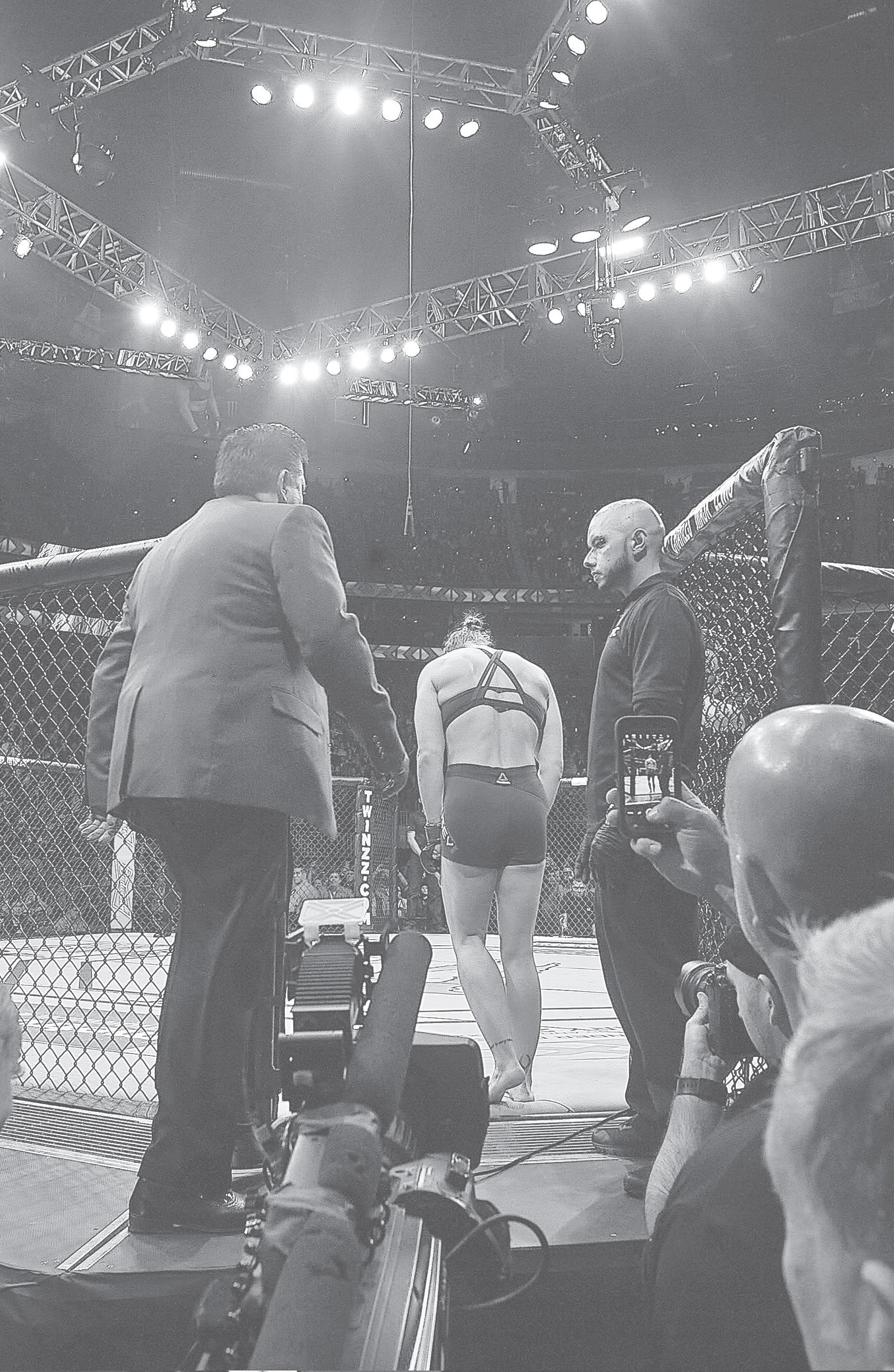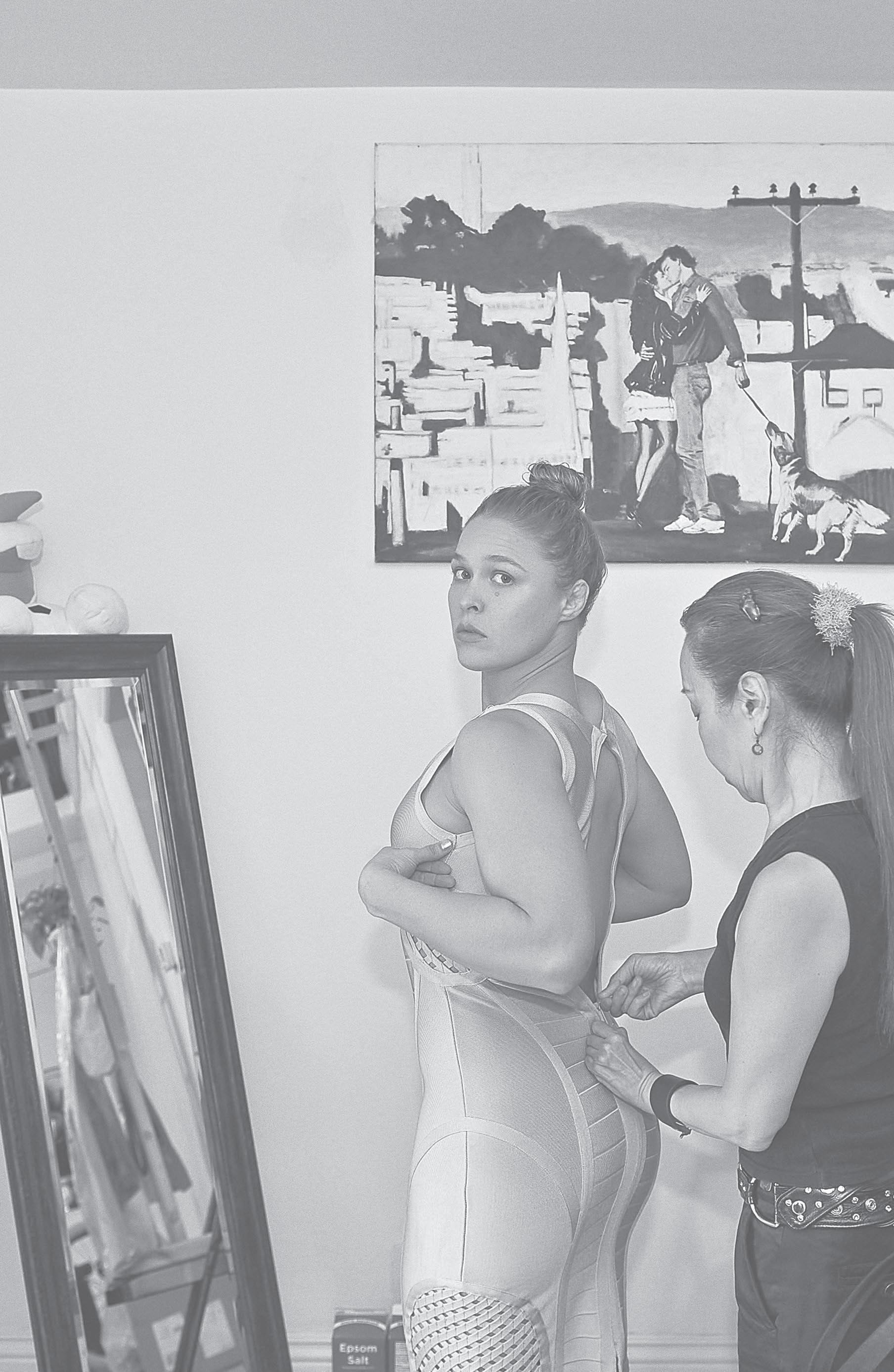I fought as a career. I hadn’t set out to become a professional fighter, but in the gym I found solace and purpose after walking away from the sport that had defined my entire life. MMA presented another chance to chase greatness. A way to use my skills to prove that I was capable of being the best in the world. It was a place to channel my drive, energy, and hope. And in less than two years of training, I had taken not only myself to the sport’s highest level, but elevated women to a level that no one had ever believed possible. No one but me, that is. Within four years of me first stepping into an MMA cage, I had changed the face of the entire sport. I ran up an undefeated win streak of fi fteen fights, many of which were over in a matter of seconds. Until the moment I stepped into that cage in Melbourne, headlines everywhere asked, “Is Ronda Rousey the greatest fighter we’ve ever seen?” Now, with a single defeat, I had lost everything.