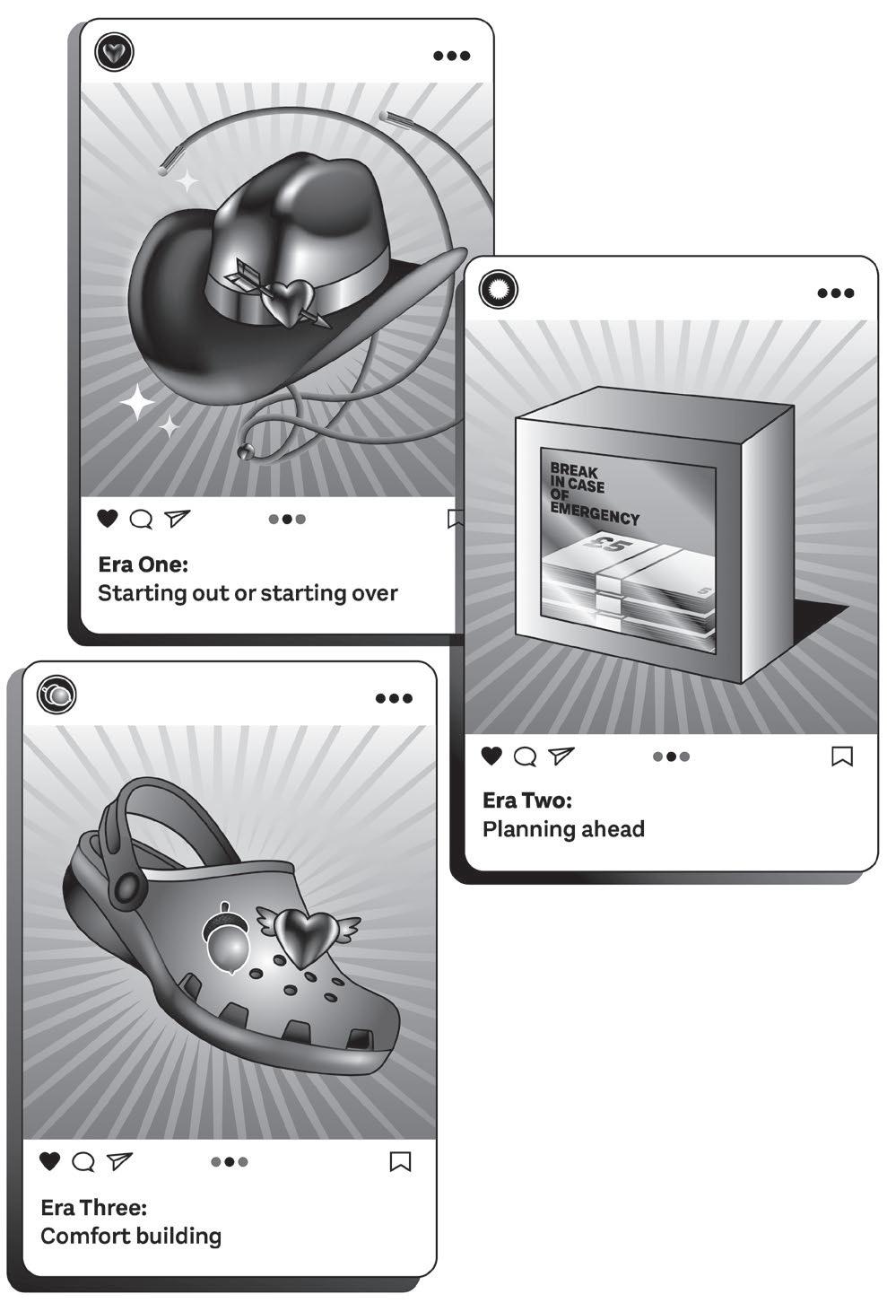 at isn’t necessarily linked to your age. Setbacks are normal, progress isn’t linear, and you might find you don’t fit perfectly into one stage. Perhaps you’re starting afresh in your 50s after a divorce, or getting a boost in your 20s when your side hustle takes off. Think less age brackets, more Taylor Swift ‘Eras’.