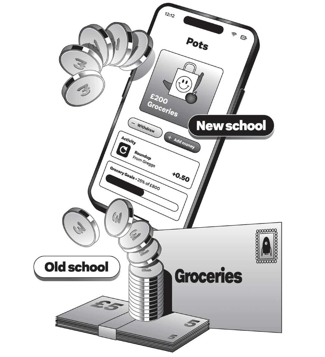 The envelope method is an old-school way to manage your money, but like quality denim or your nana’s dating advice, it still holds up. You label envelopes with categories like rent, food and entertainment, and then stash the cash you’ve budgeted for each inside. Once the envelope’s empty, that’s it – no more spending on that category. Today, you can do this digitally using banking apps, by allocating your income to different ‘pots’. The idea is exactly the same: give every pound a job and keep an eye on where it’s going. Just don’t forget to include an envelope for paying yourself first! We’ll cover this in detail in the ‘Balancing your budget’ chapter.