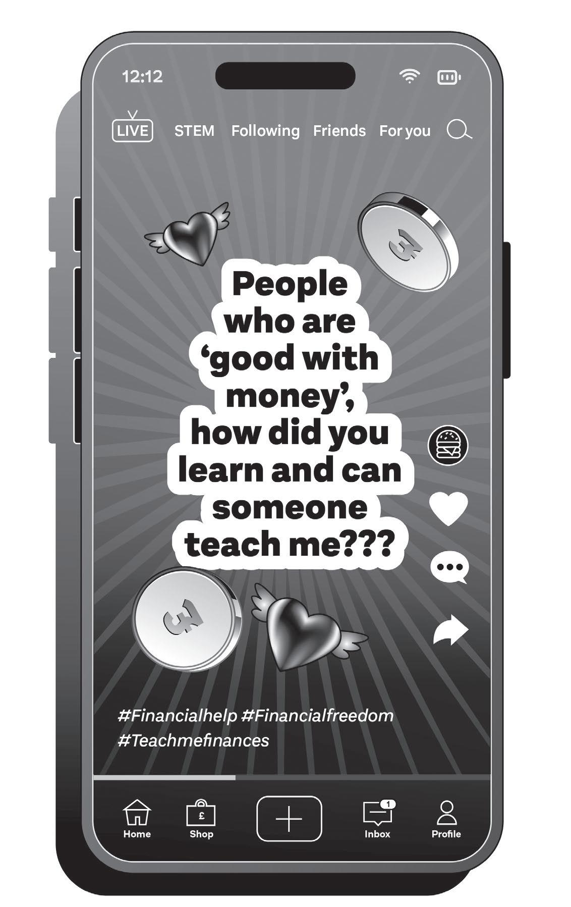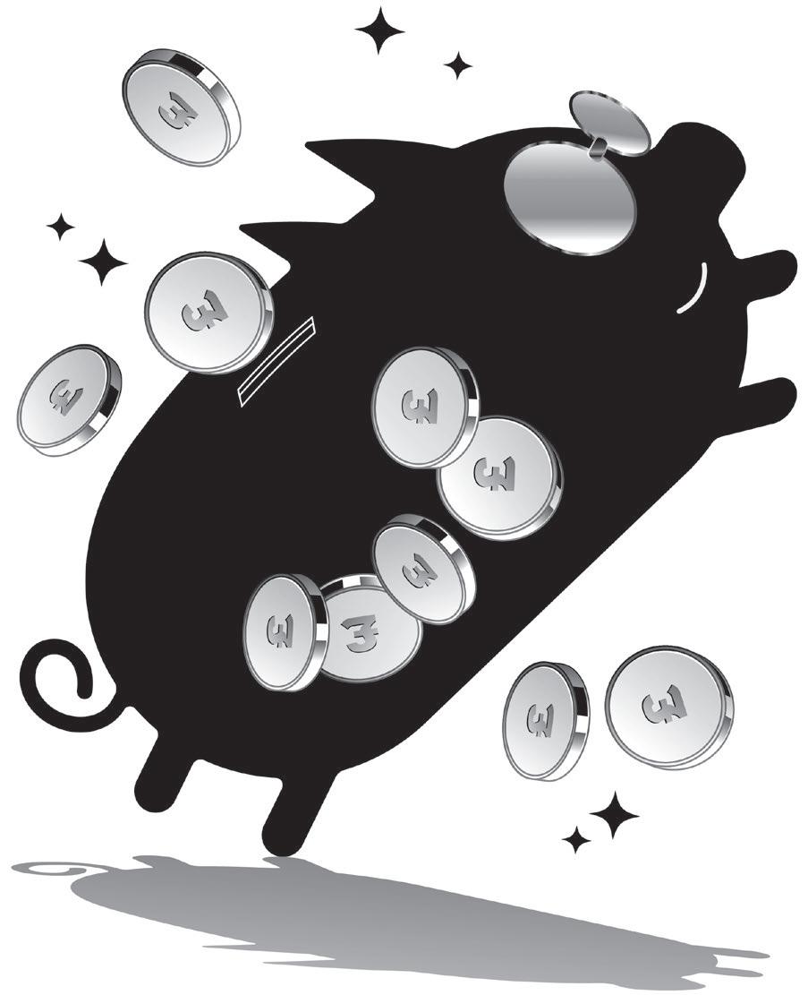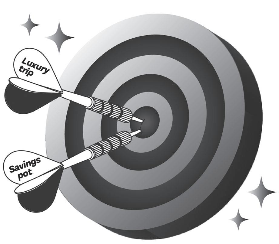 filtered social media feeds. Try not to compare. Just because your friend has a shiny new car, a six-word job title, or a massive Pokémon card collection, it doesn’t mean you’re falling behind. Progress rarely moves in a straight line, and that’s OK . The aim isn’t perfection, or becoming a briefcasetoting ‘money person’ who gets giddy over colour- coded expense charts. It’s all about finding what works for you.