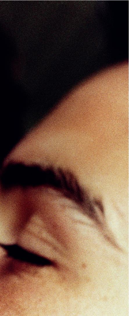 Up close I could see the mealy glue which held his real eyebrows down. Foundation had settled in the ridges of the laminated hairs. Two thin and inky arches took refuge above the ridge of his brow bone, framing his dark, long eyes. Thick contour disguised the round tip of his nose. Above and below the make-up was a handsome face. A delicate face.