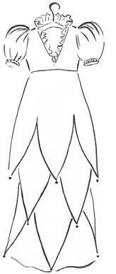 The dress was in the high-waisted style of the time, with a skirt consisting of three overlapping tiers of gauzy white silk, the hems coming down in a series of points, each one embellished at the tip with a seed-pearl rosette. They lay like the semi-transparent petals of some fantastic flower over the pale lilac base layer.