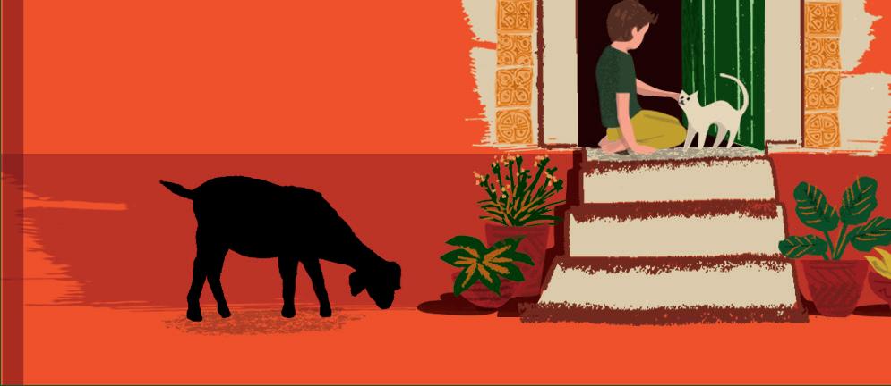 The old man and his three goats are wandering up the middle of the road behind us. The children huddle against me, more used to electric scooters and e-bikes taking up pavement space rather than four-legged animals.