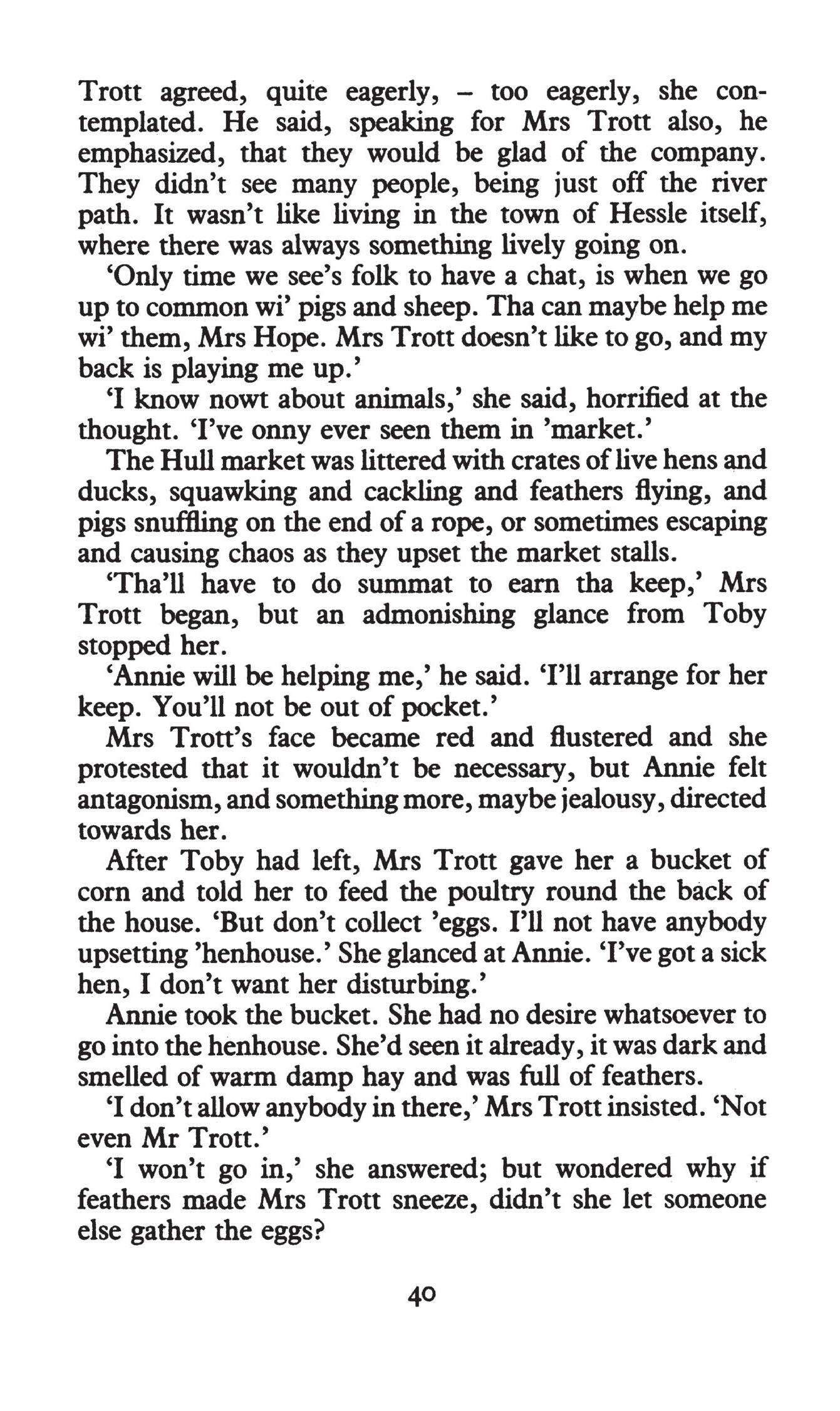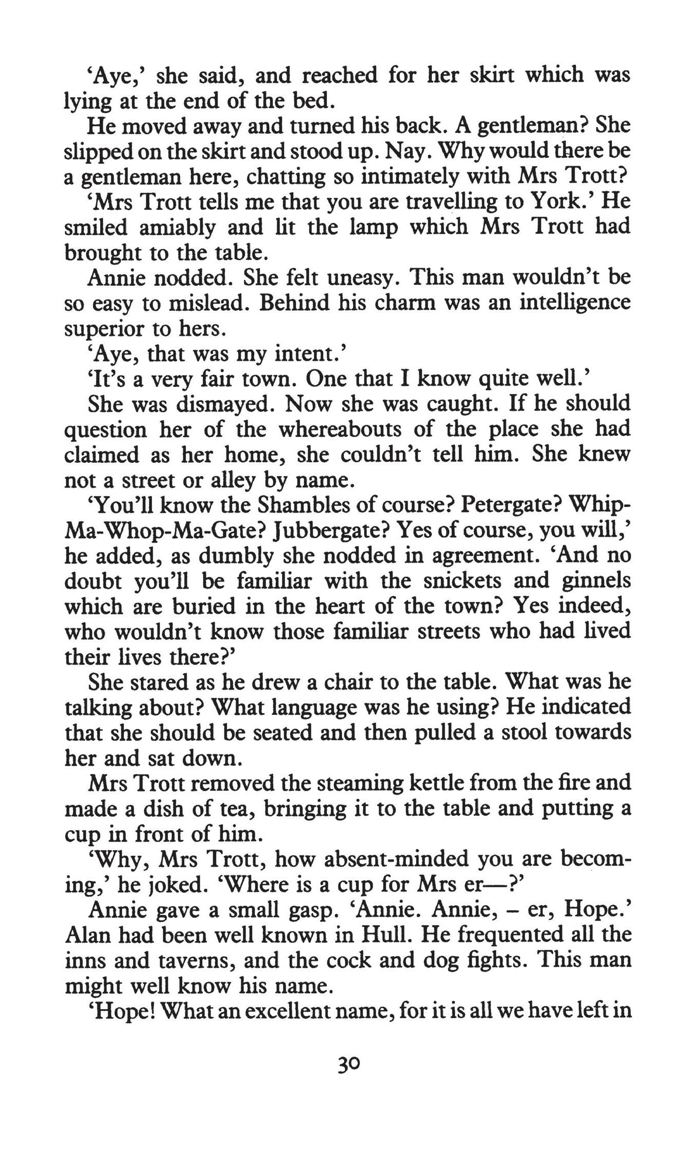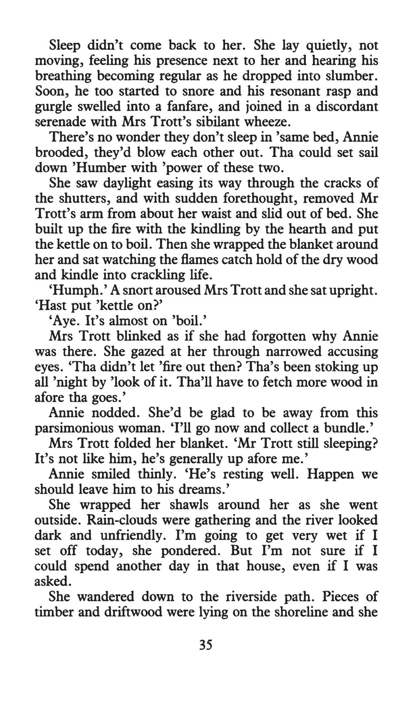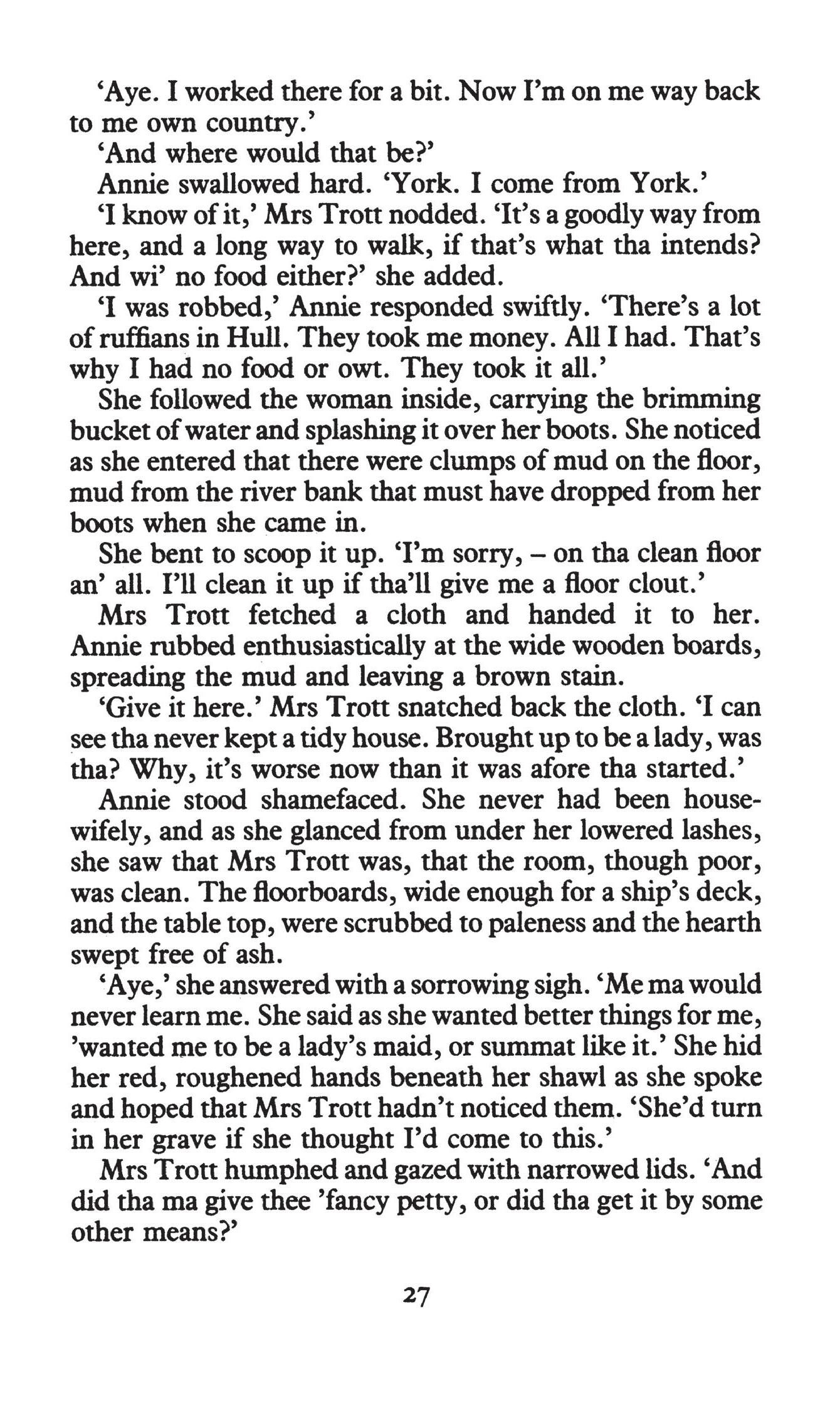 Annie Swinburn has killed a man. The man was evil in every possible way, but she knows that her only fate if she stays in Hull is a hanging. So she runs as far away as she can – to a new life that could offer her the chance of love, in spite of the tragedy that has gone before . . .