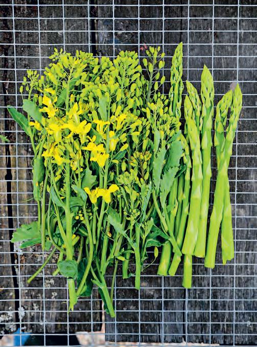 Nederst: Broccolin ’Nine Star’ (till vänster) skänker vårlycka tillsammans med kålblomsknopp och grön sparris (till höger).