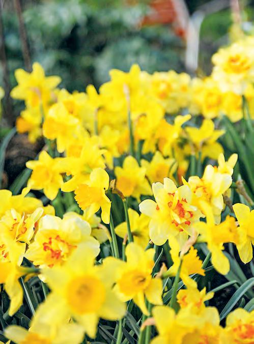 Jag tycker också om storblommiga och fyllda narcisser, men sätter dem på andra platser. I köksträdgården blommar till exempel fylld ’Tahiti’ tillsammans med enkla, helt vanliga påskliljor. Det ger också ett lekfullt uttryck med de olika formerna och nyanserna.