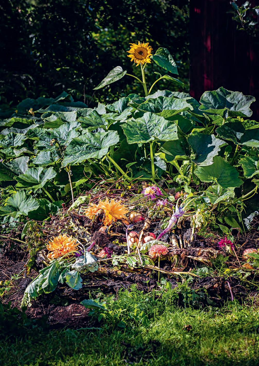 Våtarven som man rensar bort i rabatterna kommer tillbaka i form av något annat, kanske en ny ringblomma, efter det att mikroorganismer och maskar frigjort näringsämnena igen. Detsamma gäller squashen som vuxit sig för stor för att vara god att äta. Kort och lite förenklat kan man säga att allt i trädgården börjar och slutar med komposten. Trädgården är ett eget kretslopp där komposten är hjärtat, eller kanske snarare levern som rensar och städar kroppen.