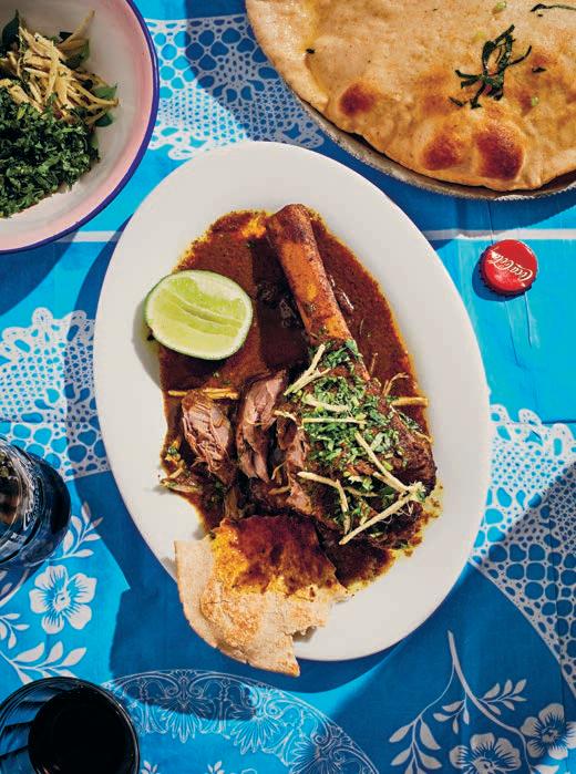4. Lyft av lammläggen, lägg upp på fat och toppa med sky, koriander och ingefära. Servera gärna med naan och lime.