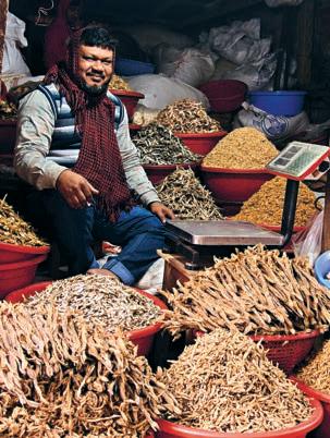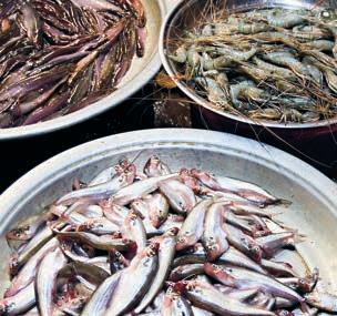 Mina släktingar blev så otroligt stolta när de fick höra att jag skulle skriva en bok om bengalisk mat och alla hade något att säga om det. Vissa gav mig en historielektion, någon berättade var jag kunde äta den godaste fuchkan eller biryanin, och andra ställde upp som personliga guider genom städernas gator. Jag fick till exempel sitta bak på min farbror Tariks motorcykel så vi kunde svisha förbi de långa bilköerna i Dhakas innerstad. Jag följde min farbror Mukul till fiskmarknaden i mina föräldrars hemby, en oändlig krokig labyrint fylld med fiskar jag aldrig hade sett förut. Vi trängdes på marknader där köpare prutade på priser, ankor sprang runt lösa och fruktstånden var prydda med frukter i regnbågens alla färger. Detta var en sida av Bangladesh jag inte hade sett förut.