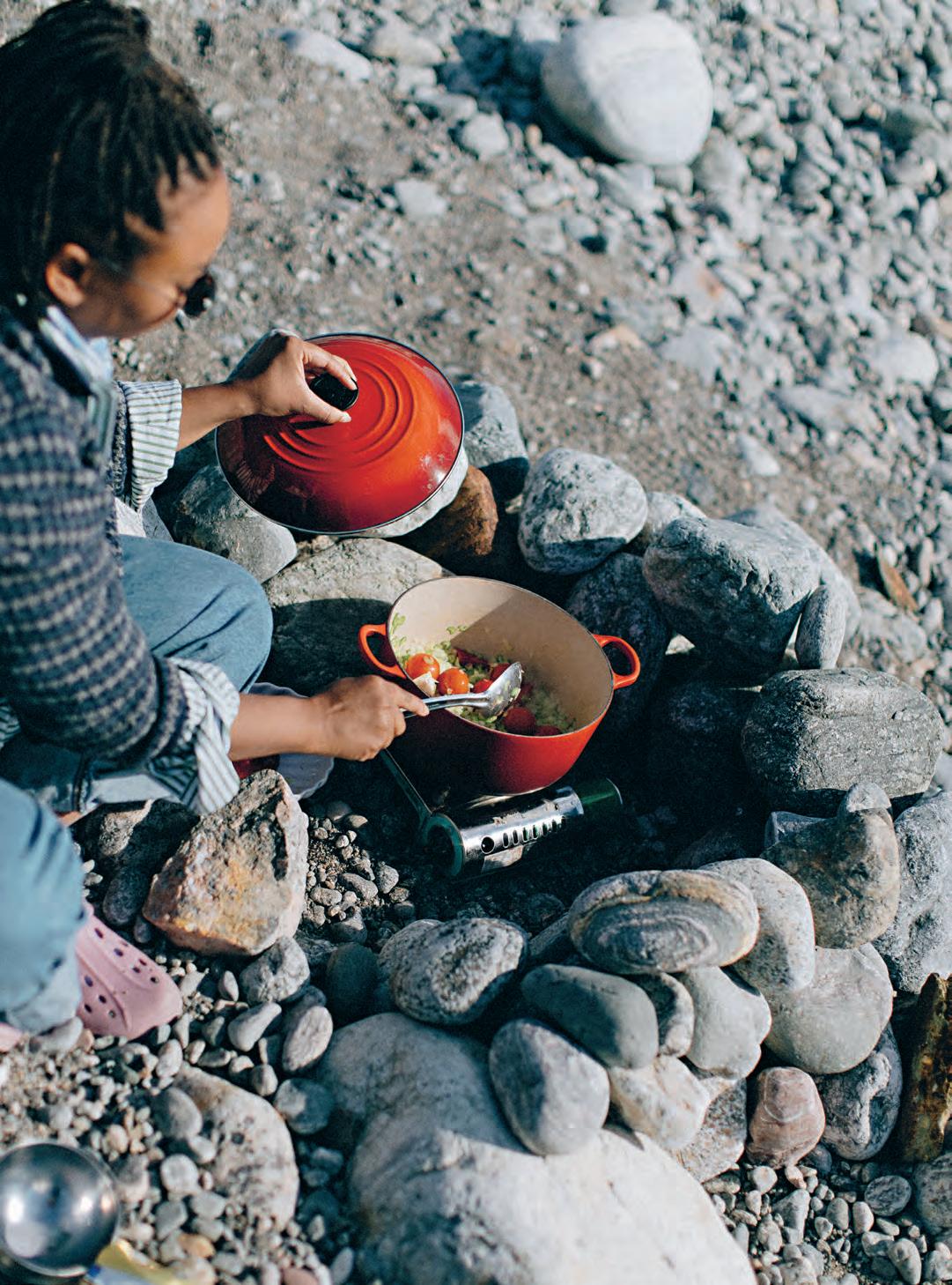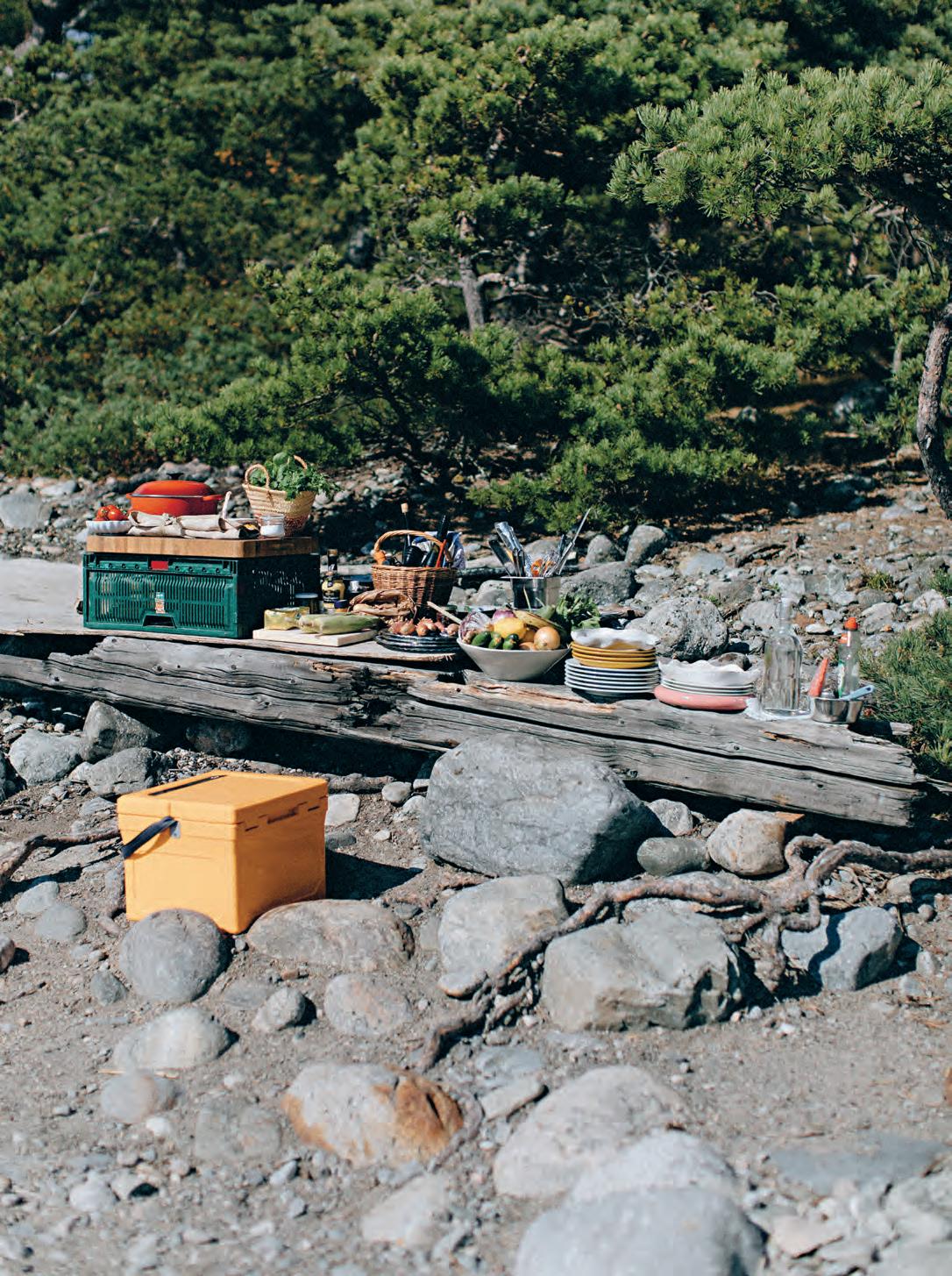 Vi har en liten konrogrill som alltid brukar vara värd att släpa med sig, och många av tillbehören går att förbereda hemma. Men att göra någonting på plats, gärna över eld, är pricken över i. Jag gillar att maxa, att duka upp ganska ordentligt, det brukar faktiskt vara värt släpandet! Särskilt om du har möjlighet att ta bil och parkera i närheten – annars står mängden saker du orkar bära med dig såklart i relation till hur långt du ska gå.
